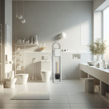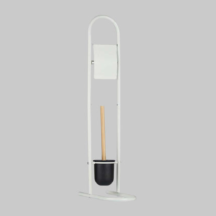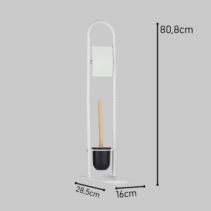 Piantana Portarotolo con Portascopino Metallo e Bambù Salvaspazio Bianco