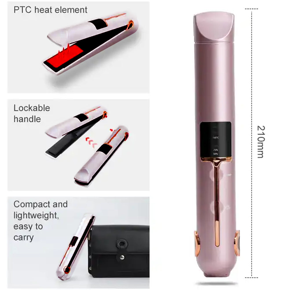 1 x Piastra per Capelli Senza Fili Portatile Rosa Ricaricabile USB Cordless Display