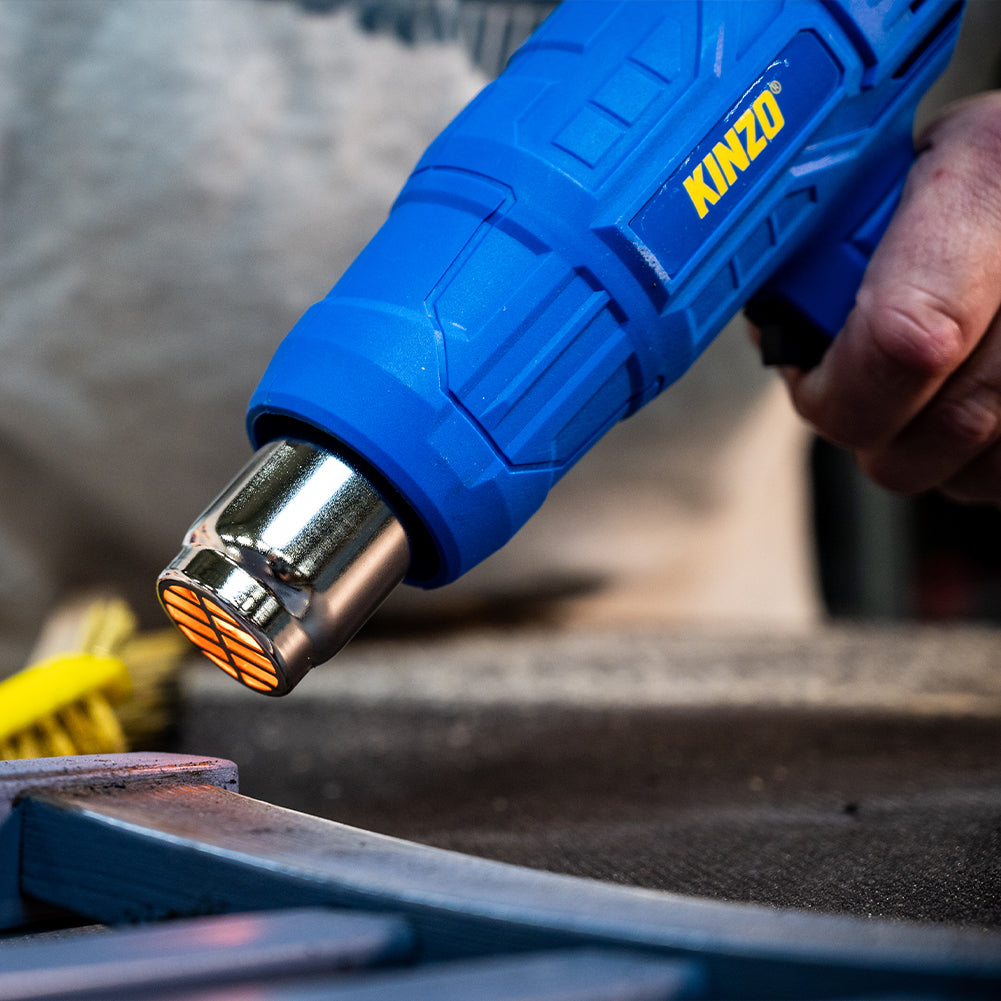 La pistola ad aria calda Kinzo è multifunzionale grazie a 2 impostazioni di calore, puoi passare facilmente da un'impostazione di calore all'altra con il pratico interruttore sull'impugnatura della pistola termica.