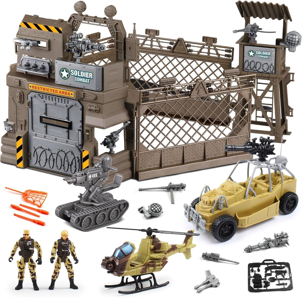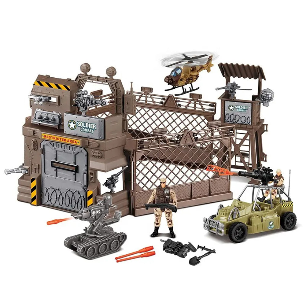 Installazioni militari con torre e cancello – Oltre ai veicoli e ai soldati, il set comprende torre di guardia, cancello e recinzioni per creare una base completa.