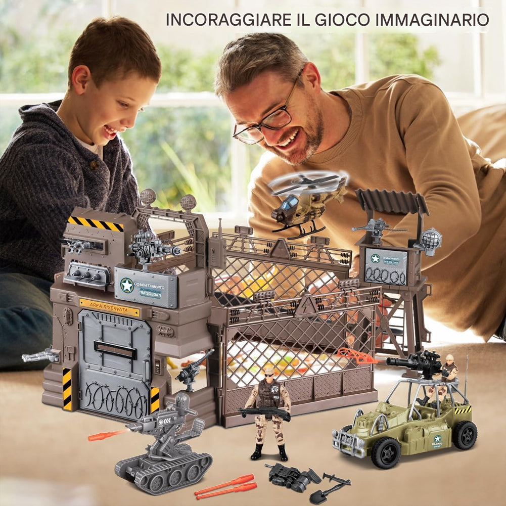 I bambini possono costruire la loro base militare e inventare scenari realistici di gioco di ruolo, stimolando creatività e immaginazione.