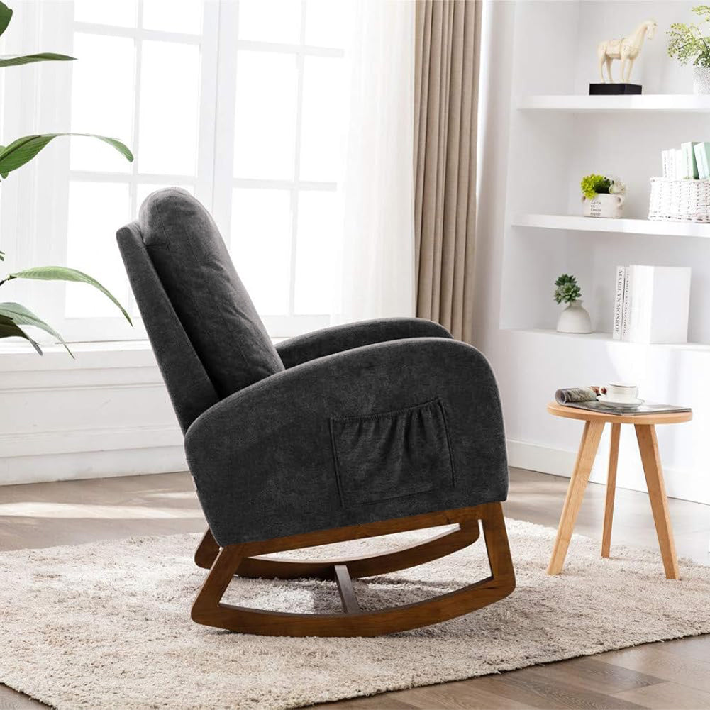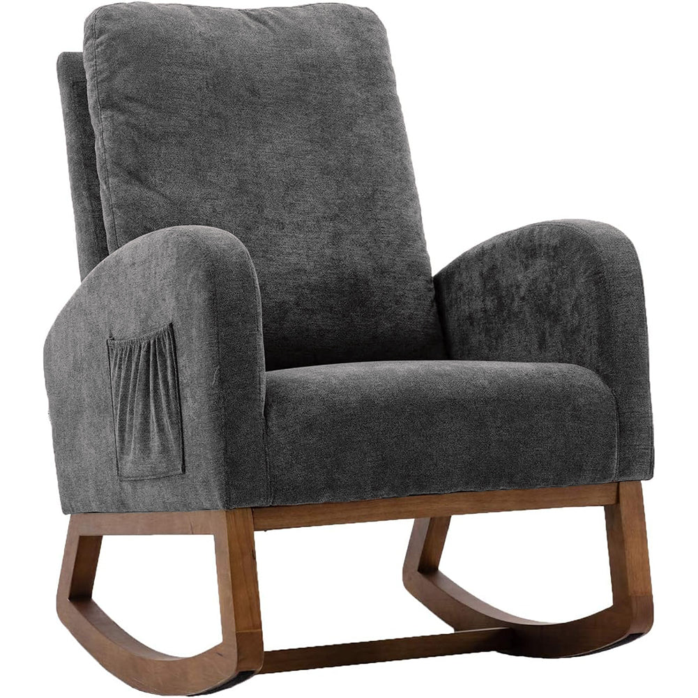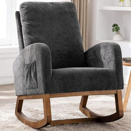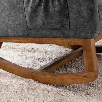 1 x Poltrona a Dondolo Grigio in Tessuto Struttura in Legno Sedia Relax Dondolante