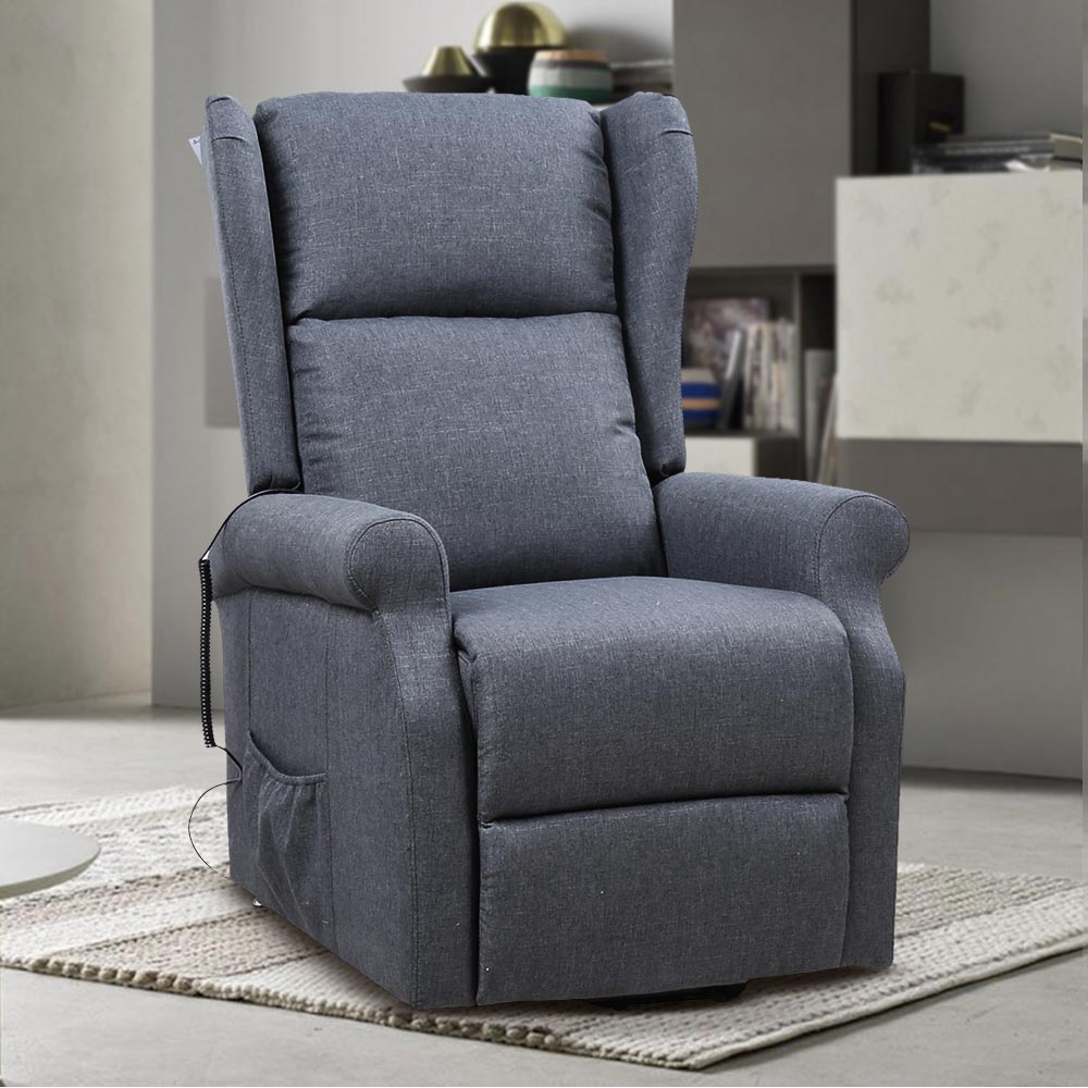 Poltrona Alzapersona Elettrica Motorizzata Reclinabile Tessuto Grigio Anziani