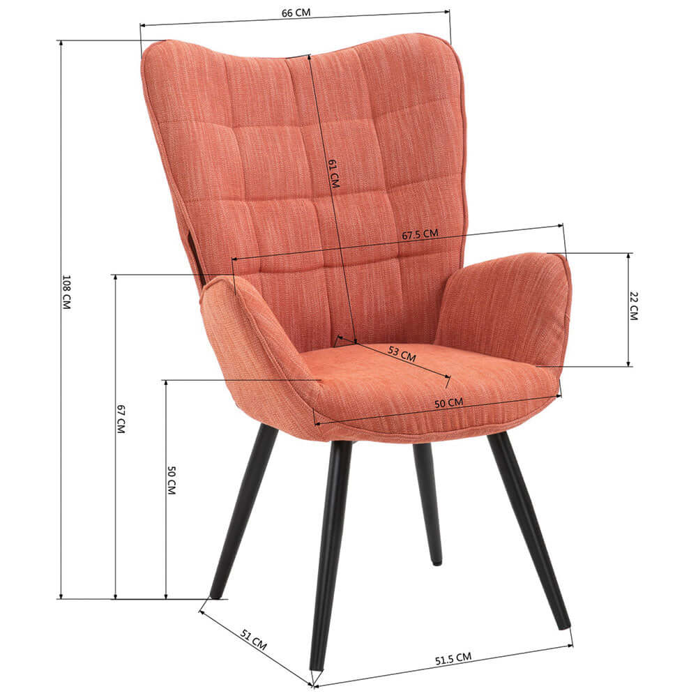 Poltrona da Casa Ufficio Papaya Tessuto Sedia con Seduta Ergonomica e Braccioli