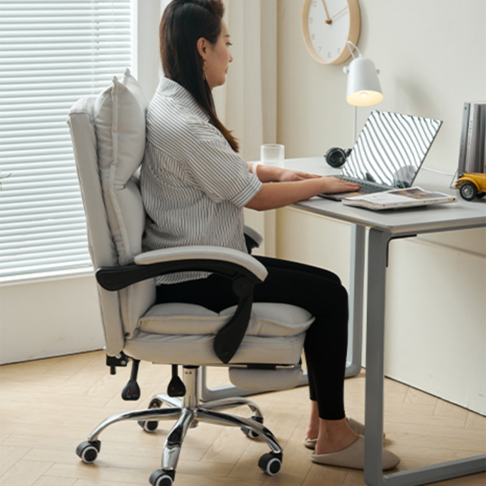 Grazie al comodo schienale ergonomico alla comoda seduta e ai due braccioli imbottiti questa sedia aiuta a mantenere costantemente una postura corretta evitando l'affaticamento della colonna vertebrale durante l'utilizzo del computer.