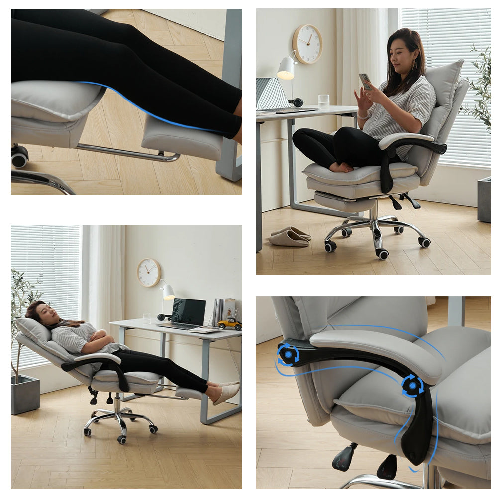 La seduta è imbottita interamente con spugna ad alta intensità che rilascia la pressione dell'anca e delle gambe favorendo cosi la circolazione del sangue durante le lunghe ore al computer.