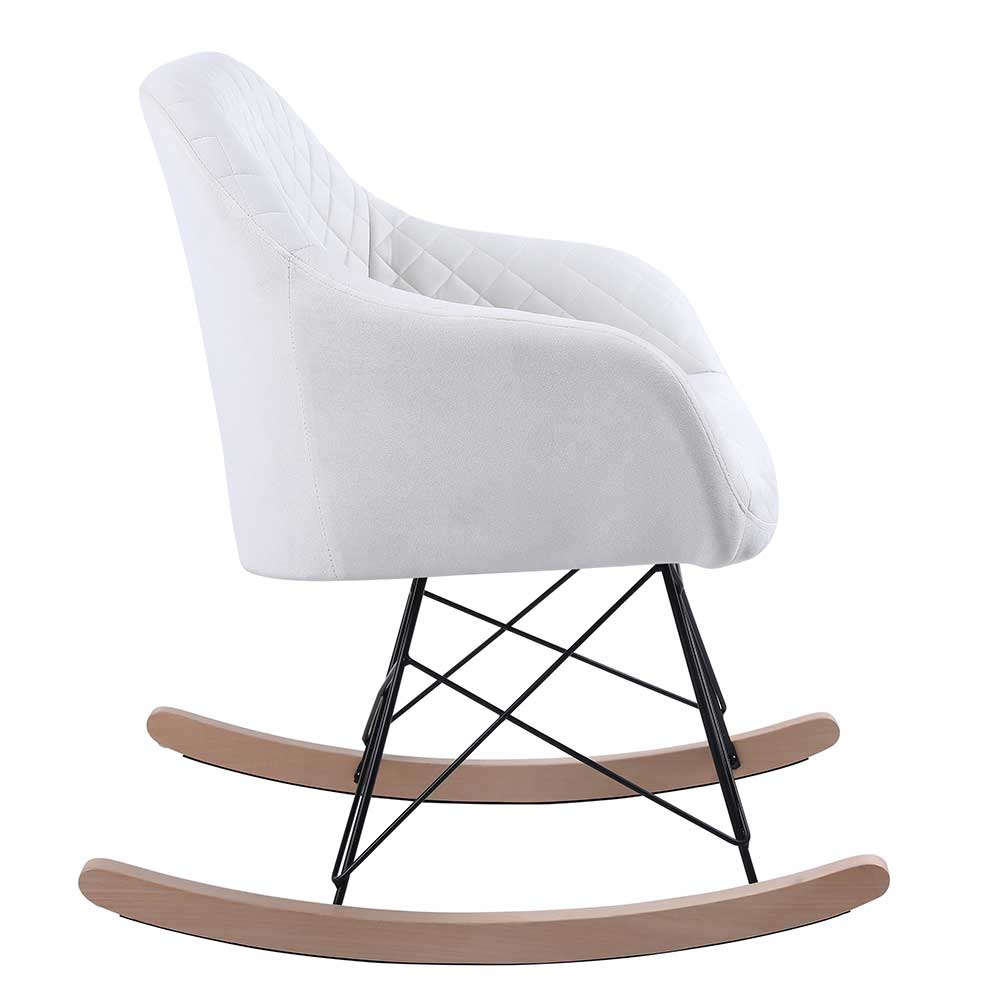 1 x Poltrona Sedia Dondolo Relax Tessuto e Metallo Imbottita Design Moderno Crema