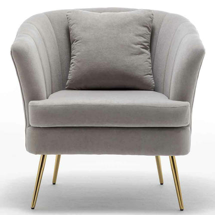 Poltrona Sedia Relax in Tessuto e Metallo Imbottita Design Moderno Grigio Oro