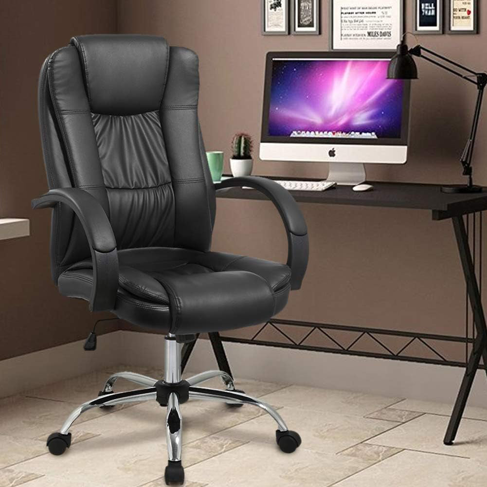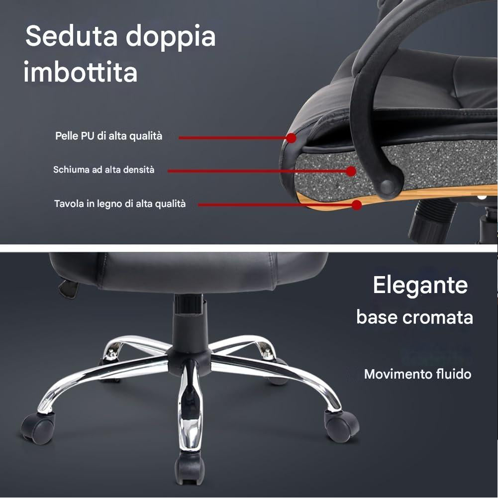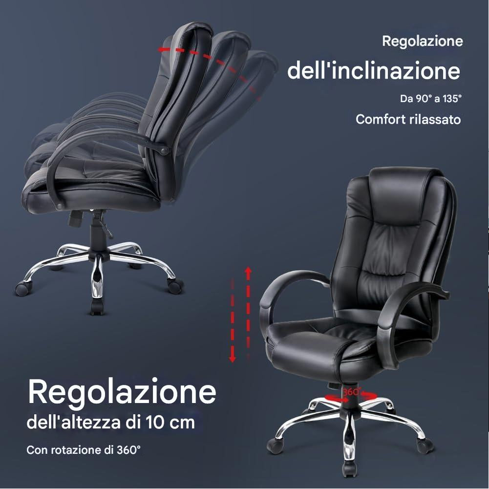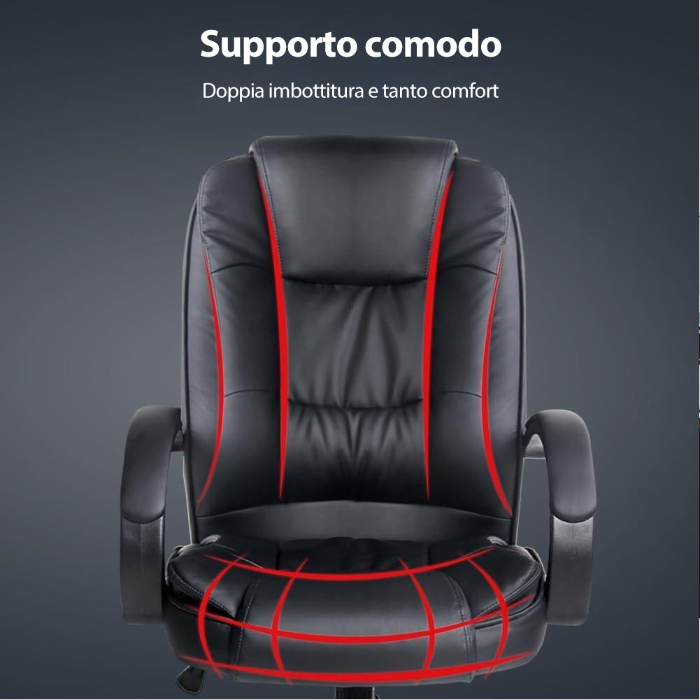 1 x Poltrona Sedia Scrivania Ufficio Presidenziale Girevole Direzionale Ecopelle Nero