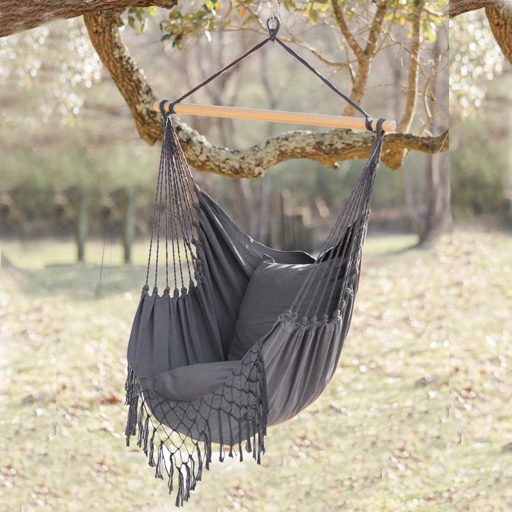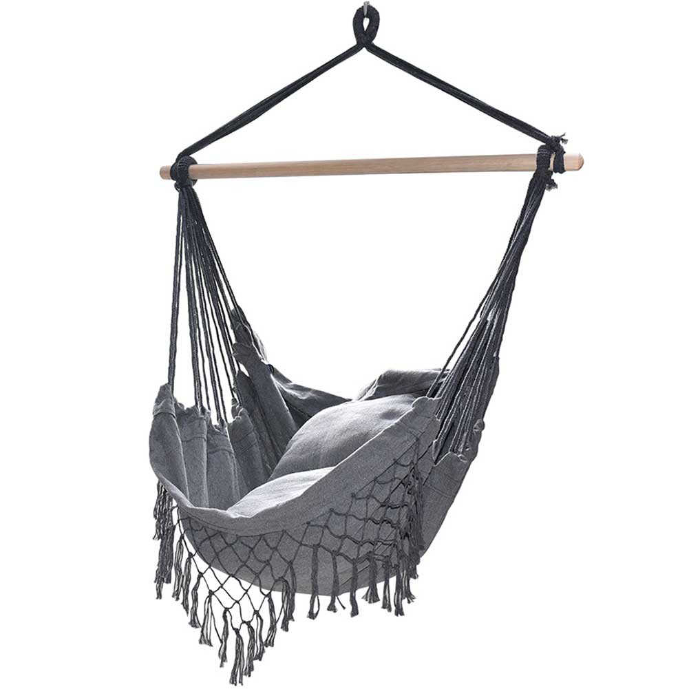 Poltrona Sospesa Giardino Sedia Dondolo Pensile Amaca Campeggio Cuscini Grigio