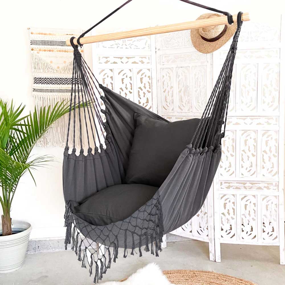 La poltrona sospesa bakaji viene fornita di doppio cuscino 35x35cm da inserire sulla seduta della poltrona per un comfort di seduta davvero eccezionale.