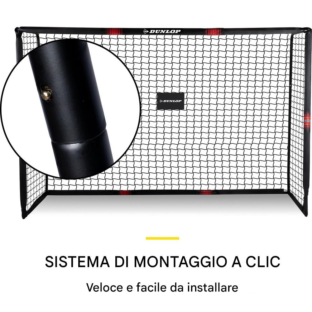 Grazie alle aste descritte e al sistema di montaggio a scatto, la porta calcio è facile e veloce da montare e da utilizzare immediatamente in partita.