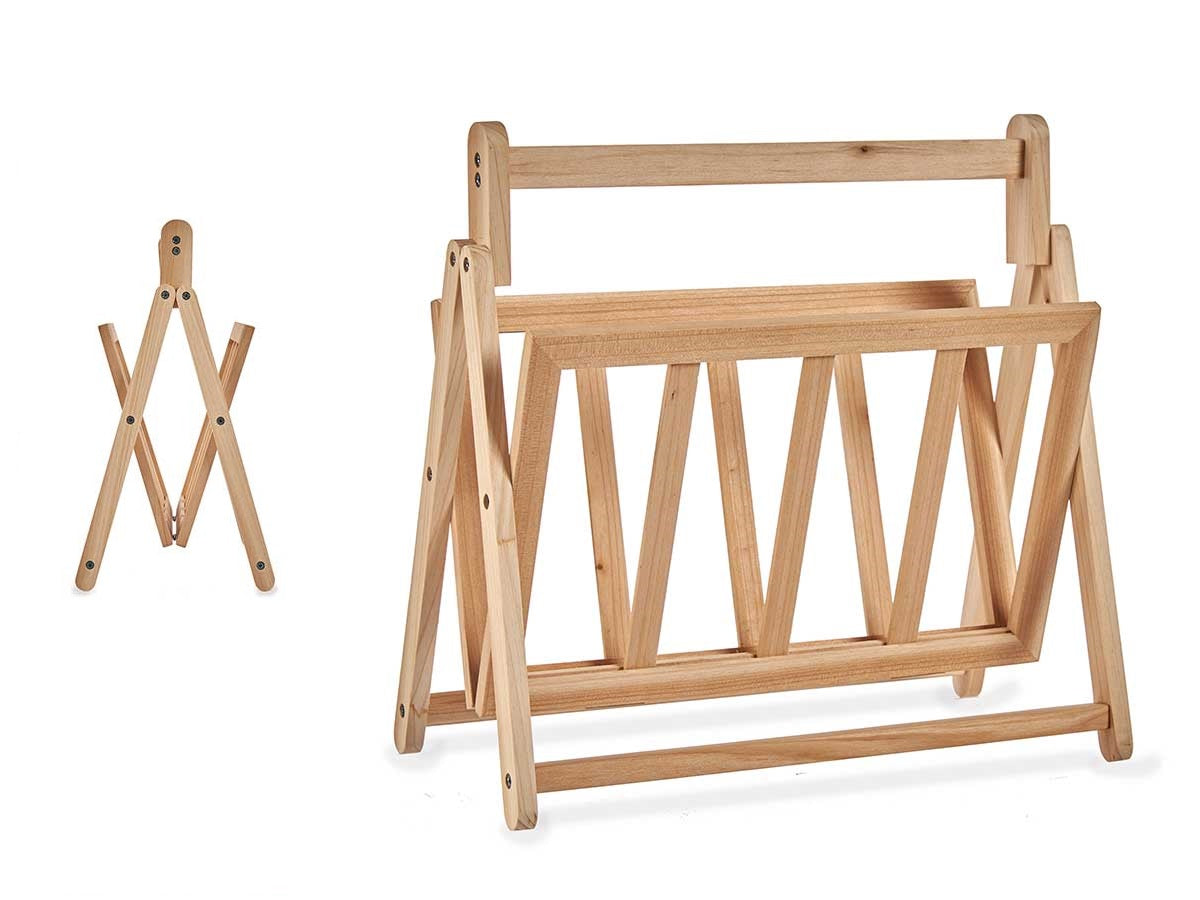 Porta Riviste Giornali in Legno Pieghevole Cesta Salvaspazio 36.5x30x37.5cm