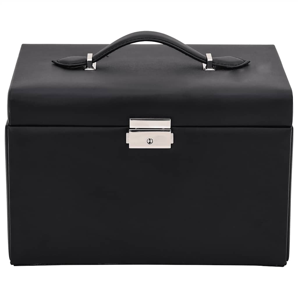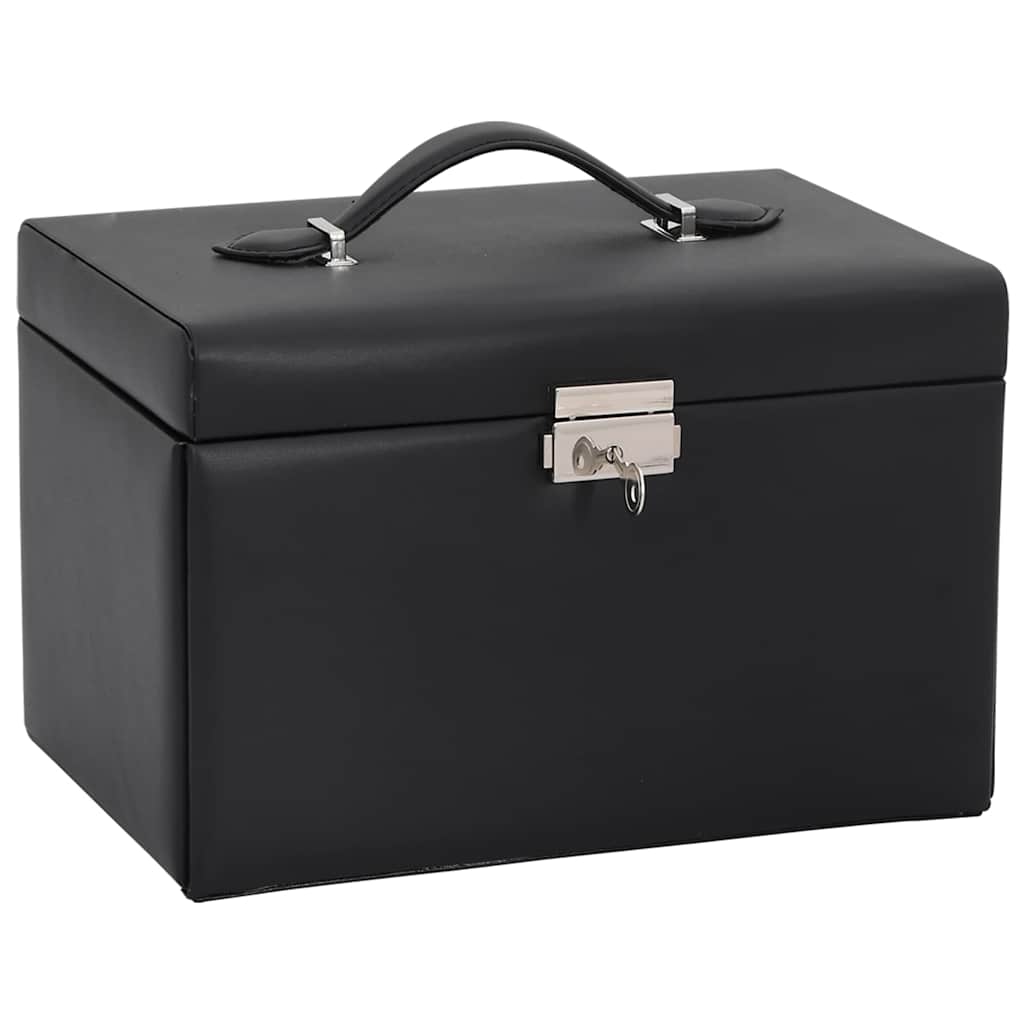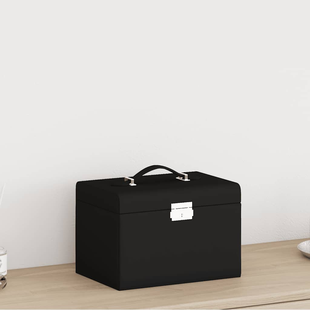 Portagioie a 3 Strati con Specchio Bloccabile Nero 26x18x17,5cm