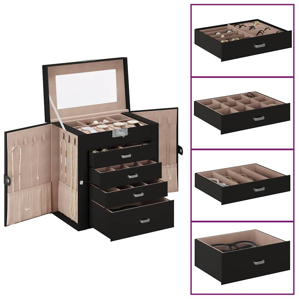 Portagioie a 5 Strati con Specchio Chiudibile a Specchio Nero