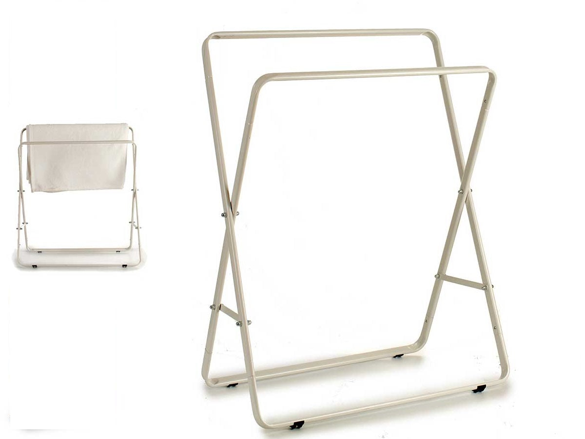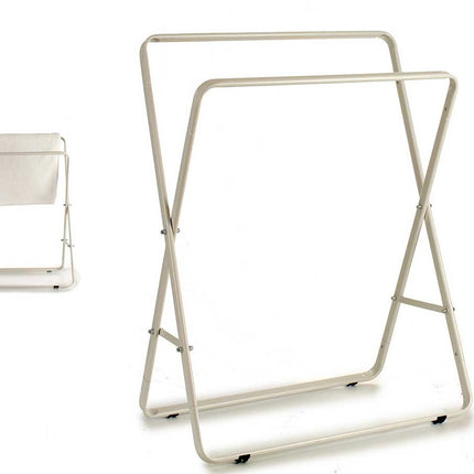 Portasciugamani Doppio da Bagno in Metallo 2 Aste Bianco Pieghevole 66x35x80cm
