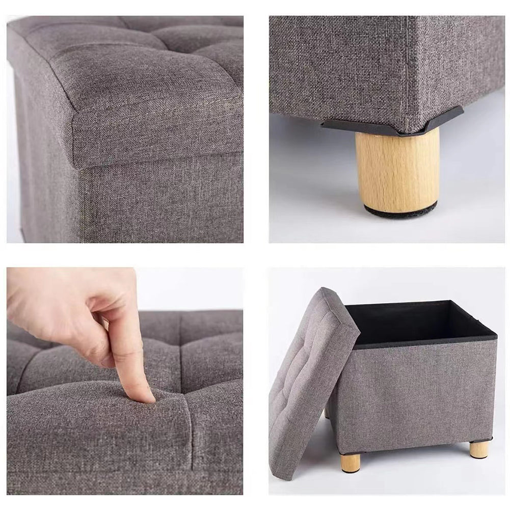 1 x Pouf Contenitore Grigio in Lino Imbottito Poggiapiedi Sgabello Baule Versatile