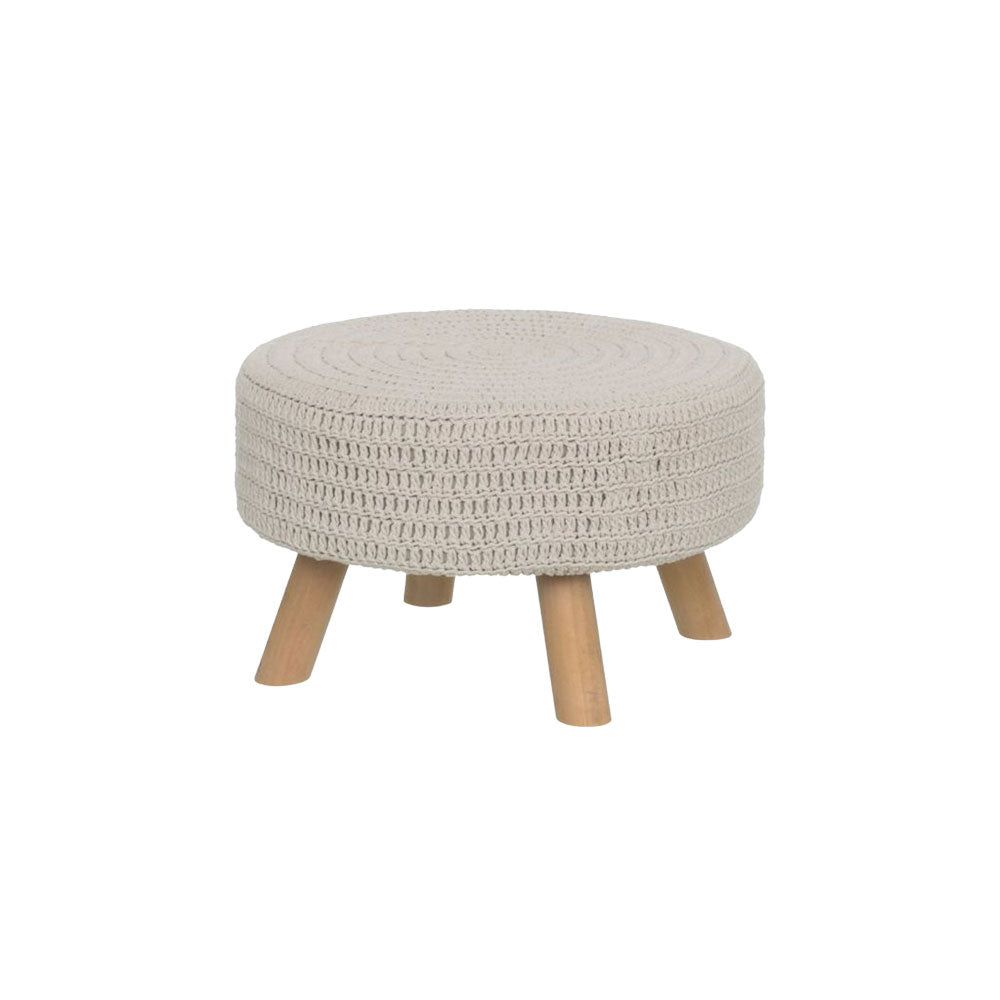 1 x Pouf Sgabello Basso Piedi in Legno Poggiapiedi Tessuto Tortora Diametro 50 cm