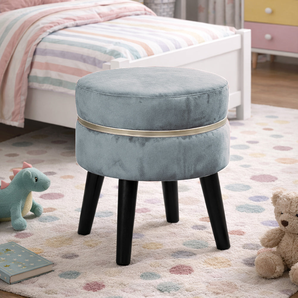 Pouf rotondo dal design contemporaneo, rivestito in velluto soffice e piacevole al tatto, ideale per aggiungere un tocco raffinato a soggiorno, camera da letto o ufficio.