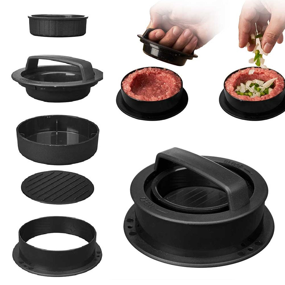 Pressa Hamburger 5 pezzi Plastica Antiaderente per Burger Ripieni e Classici