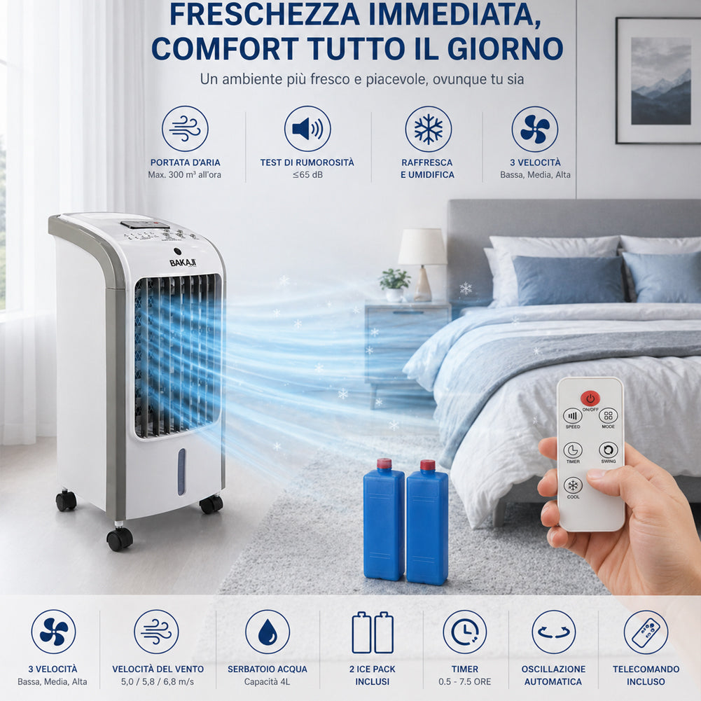 1 x Raffrescatore Aria Air Cooler Ventilatore con Serbatoio Ghiaccio e Telecomando