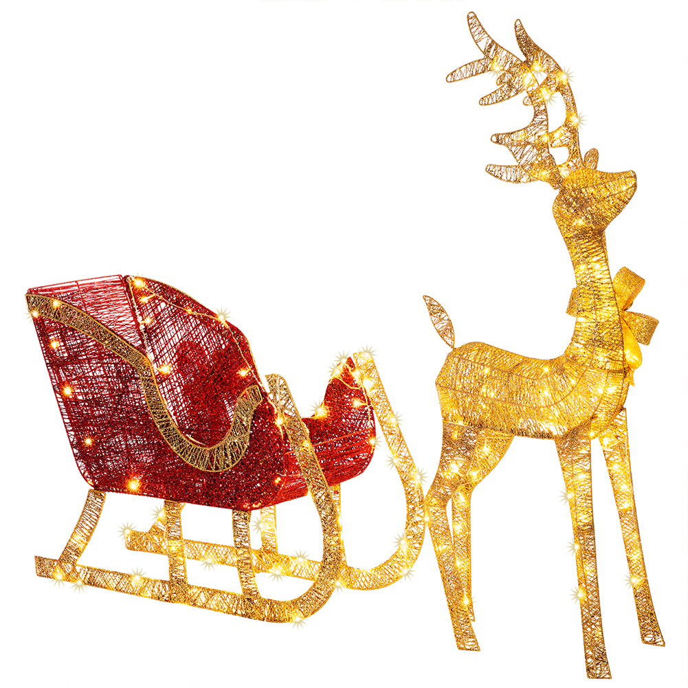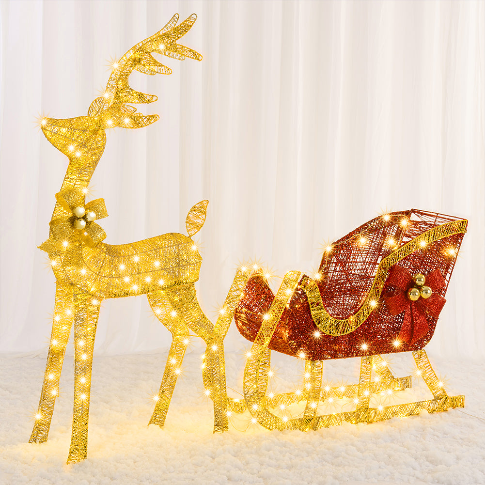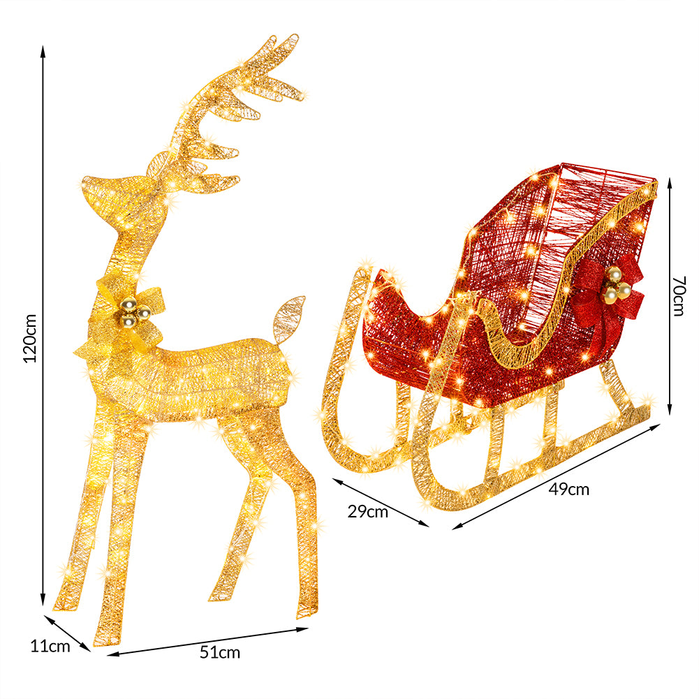 Renna Natalizia con Slitta Luminosa per Esterno 8 Funzioni Bianco Caldo Natale