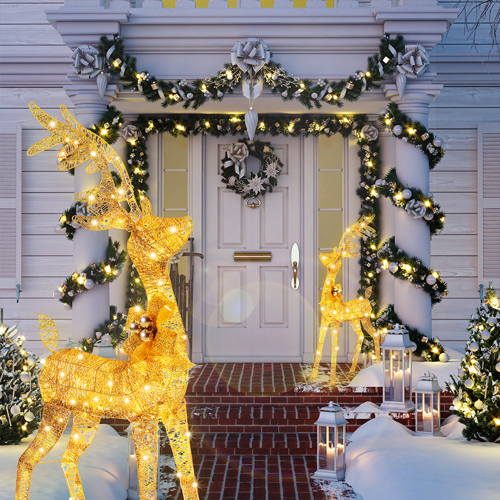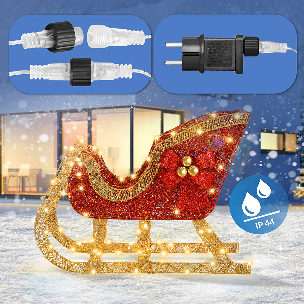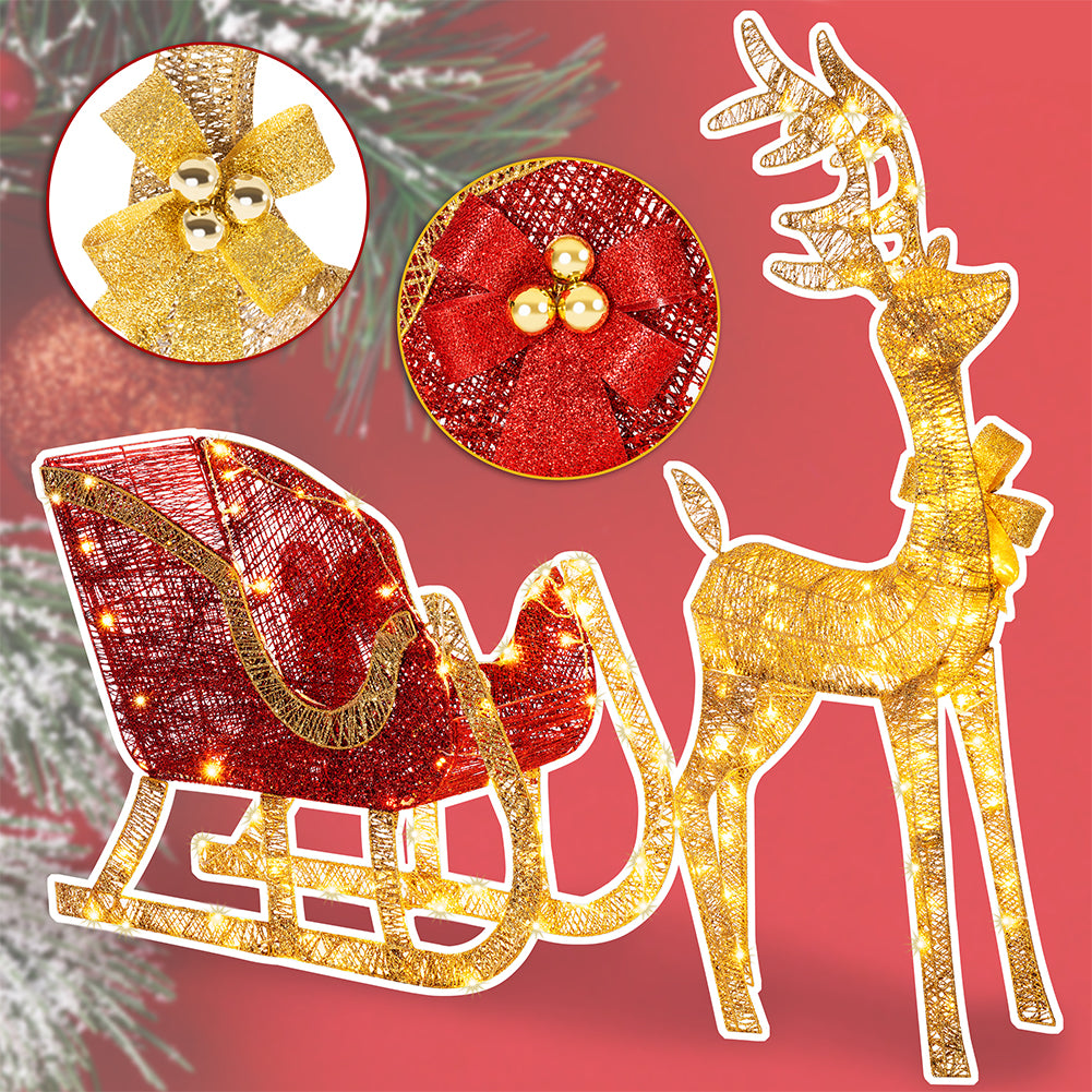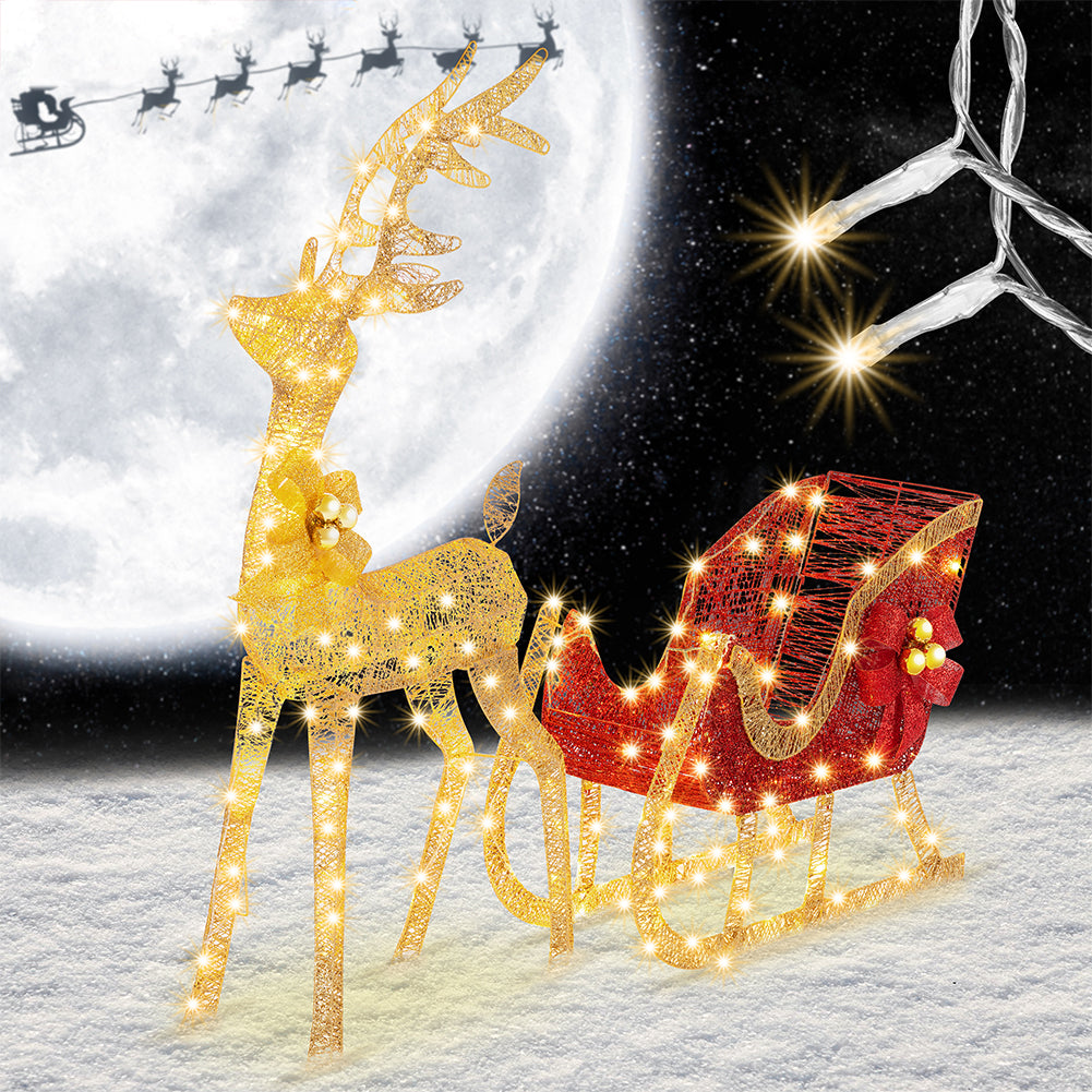 Renna Natalizia con Slitta Luminosa per Esterno 8 Funzioni Bianco Caldo Natale