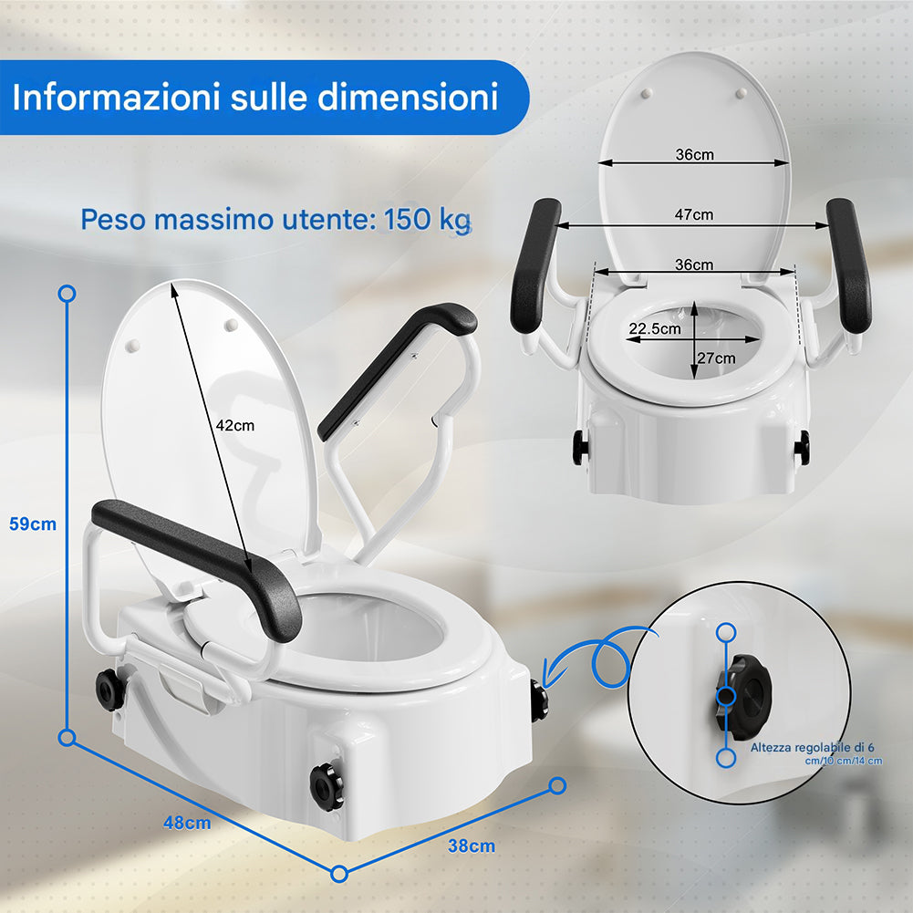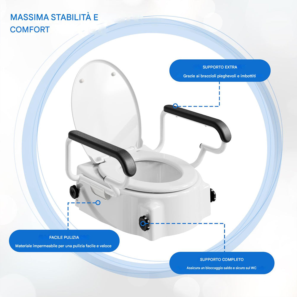 1 x Rialzo per Sedile WC Braccioli Maniglie Assistite Copriwater Disabili e Anziani