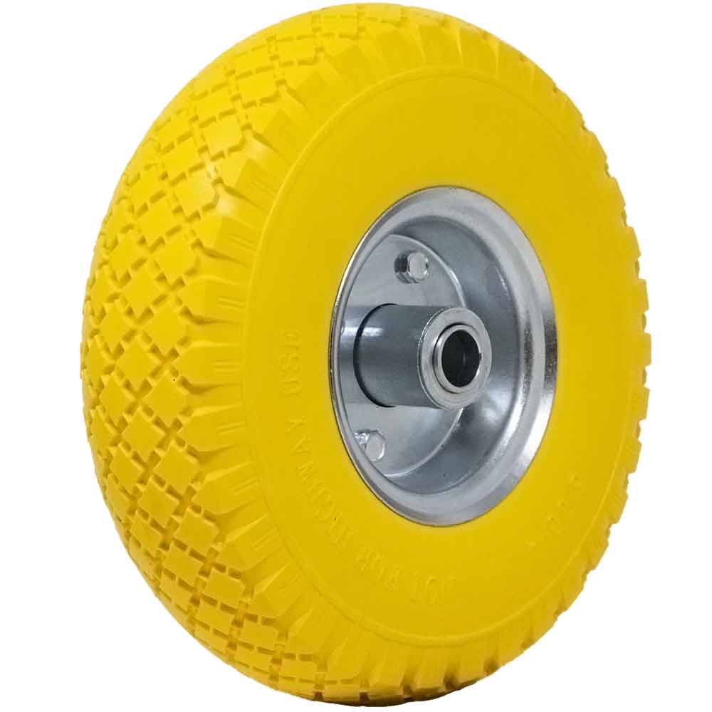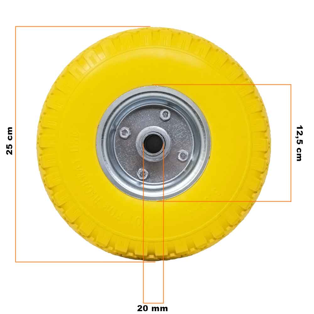 Ruota Piena Antiforatura PU Gialla Carrello Carriola 25cm Cerchio in Acciaio