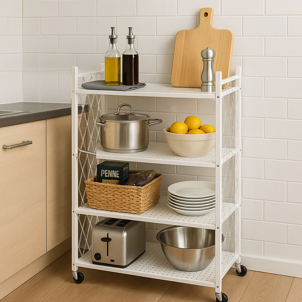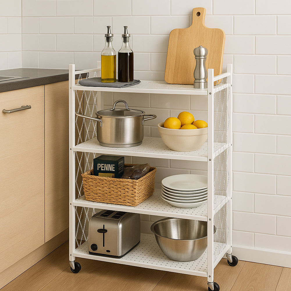 Ogni ripiano supporta fino a 15 kg, per un totale di 45 kg: potrai usarlo in cucina, in ufficio, in lavanderia o in garage per utensili, elettrodomestici o oggetti ingombranti.