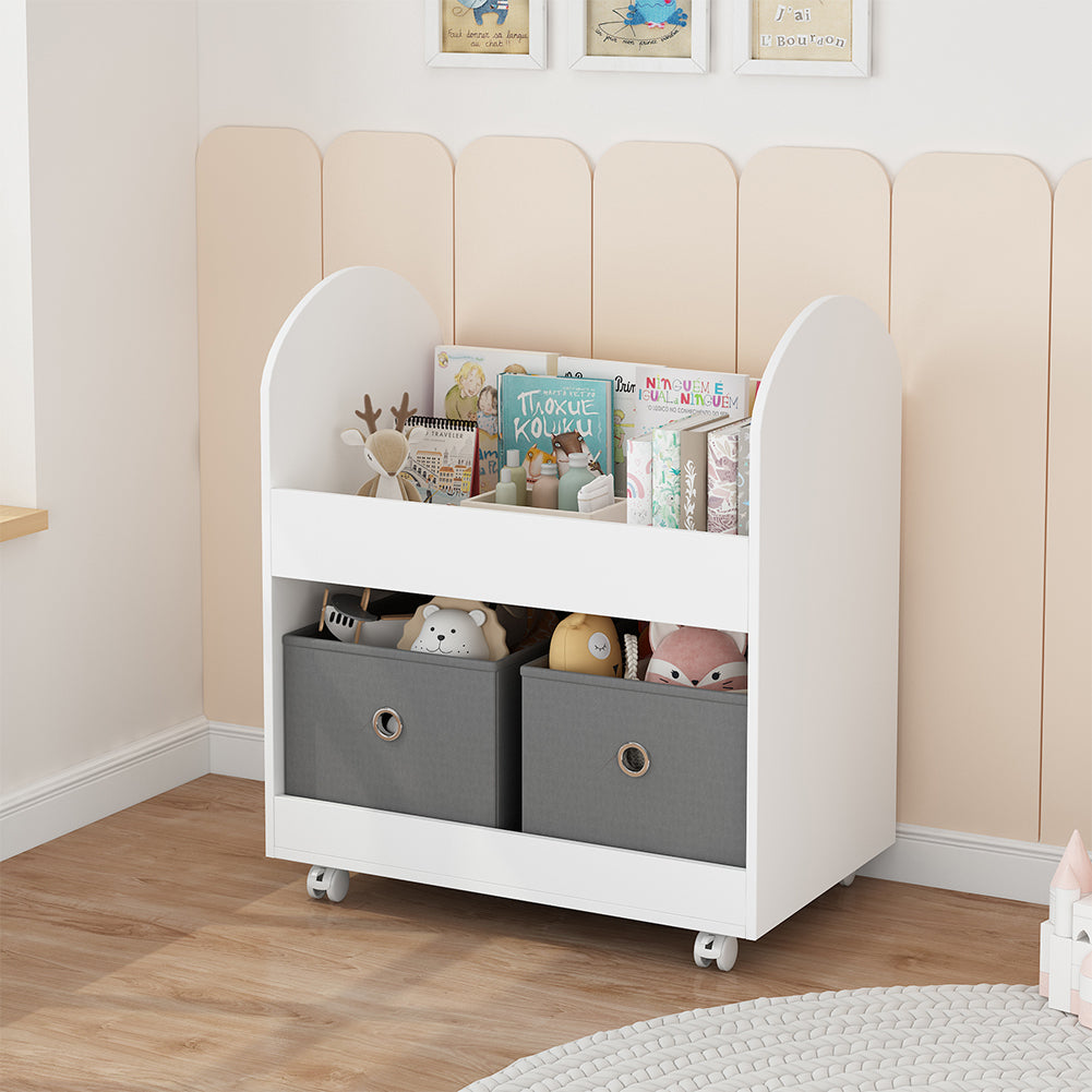 1 x Scaffale per Bambini con 2 Cassetti in Tessuto Libreria con Ruote Scaffalatura Portaoggetti