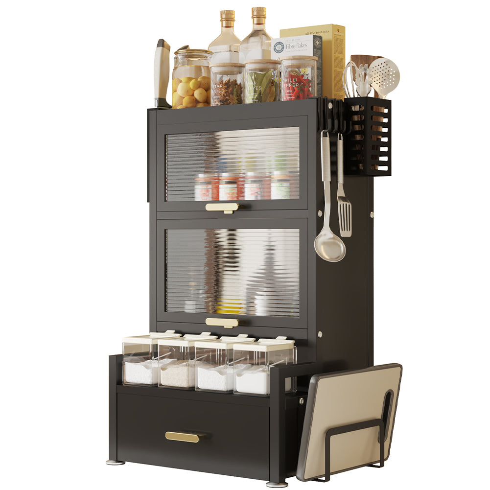 Scaffale Scaffalatura Credenza in Metallo con Doppia Vetrinetta e Cassetto Nero