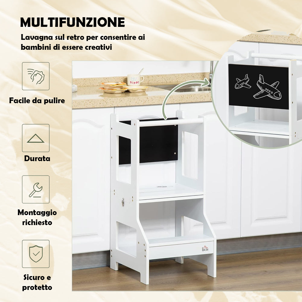 Scala Montessori 2in1 Bianco Staccabile Torre Montessoriana Sgabello e Lavagna