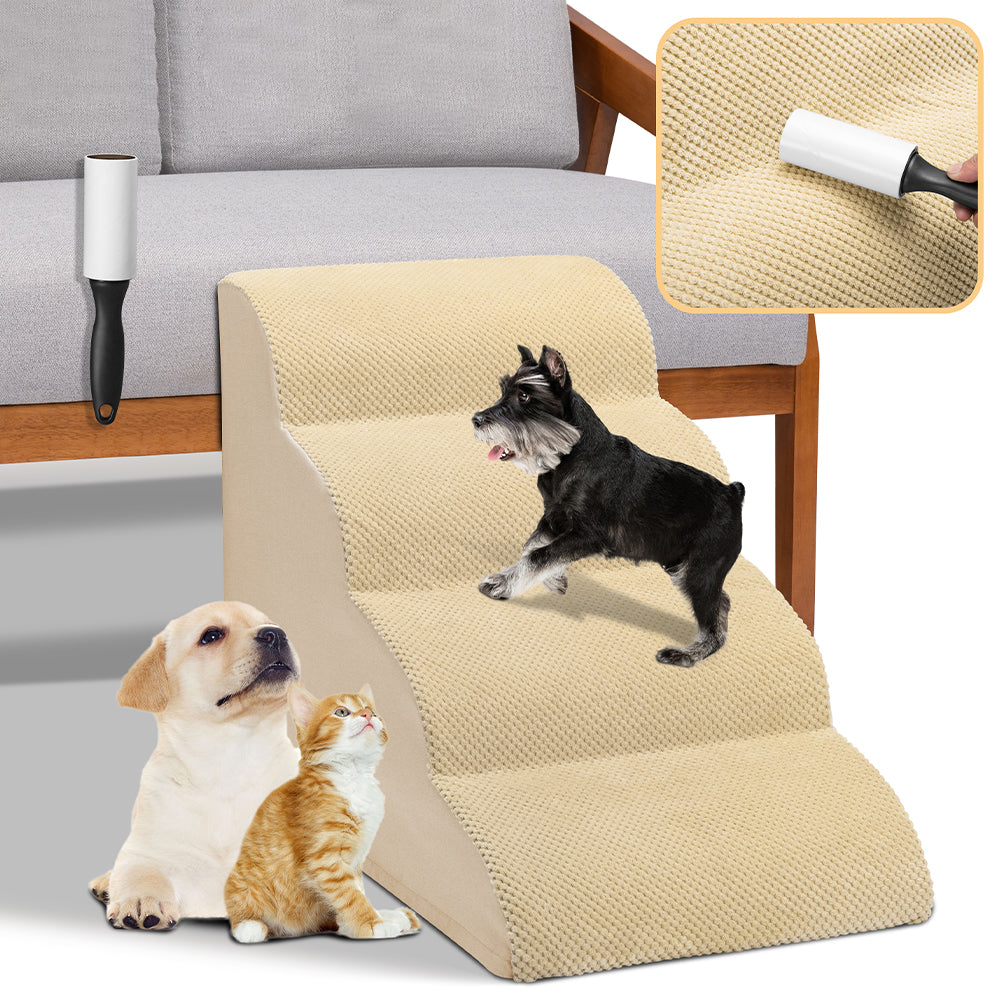 Scala per Animali Domestici Beige 4 Scalini per Gatti e Cani Rullo Rimuovi Peli