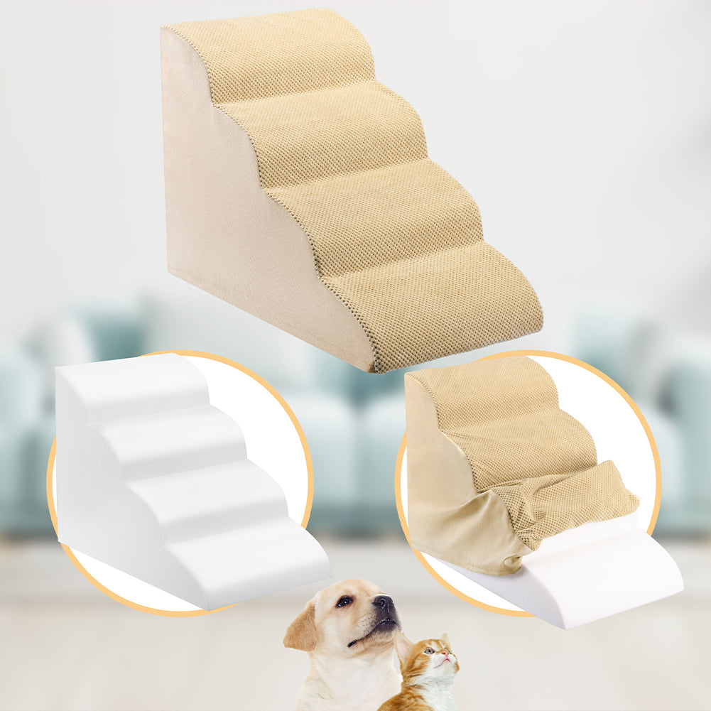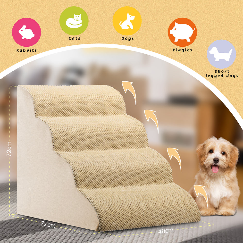 1 x Scala per Animali Domestici Beige 4 Scalini per Gatti e Cani Rullo Rimuovi Peli