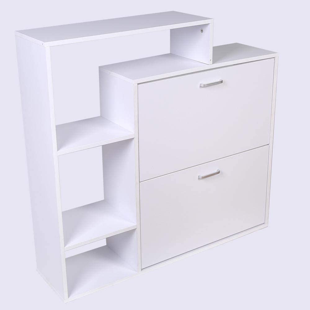 Scarpiera 2 Ante Doppia Profondita con Scaffale Libreria 4 Ripiani Legno Bianco