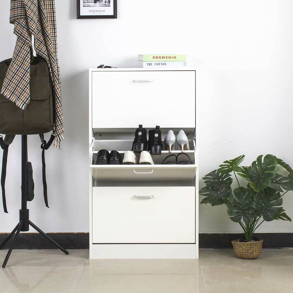 Scarpiera 3 Ante Ripiani Doppia Profondita in Legno 59x22x105 cm Bianco Lucido