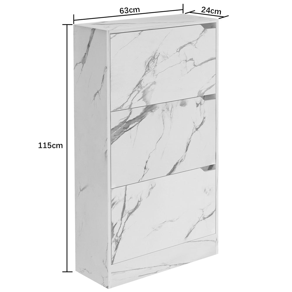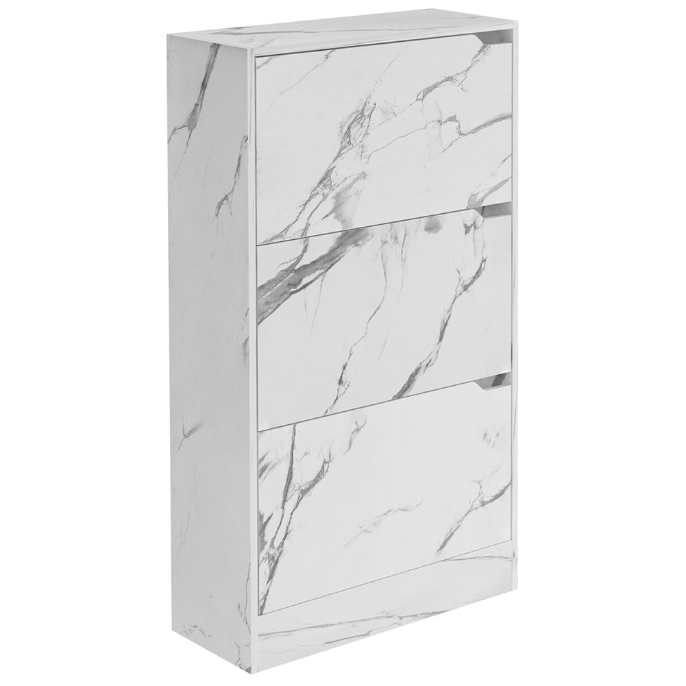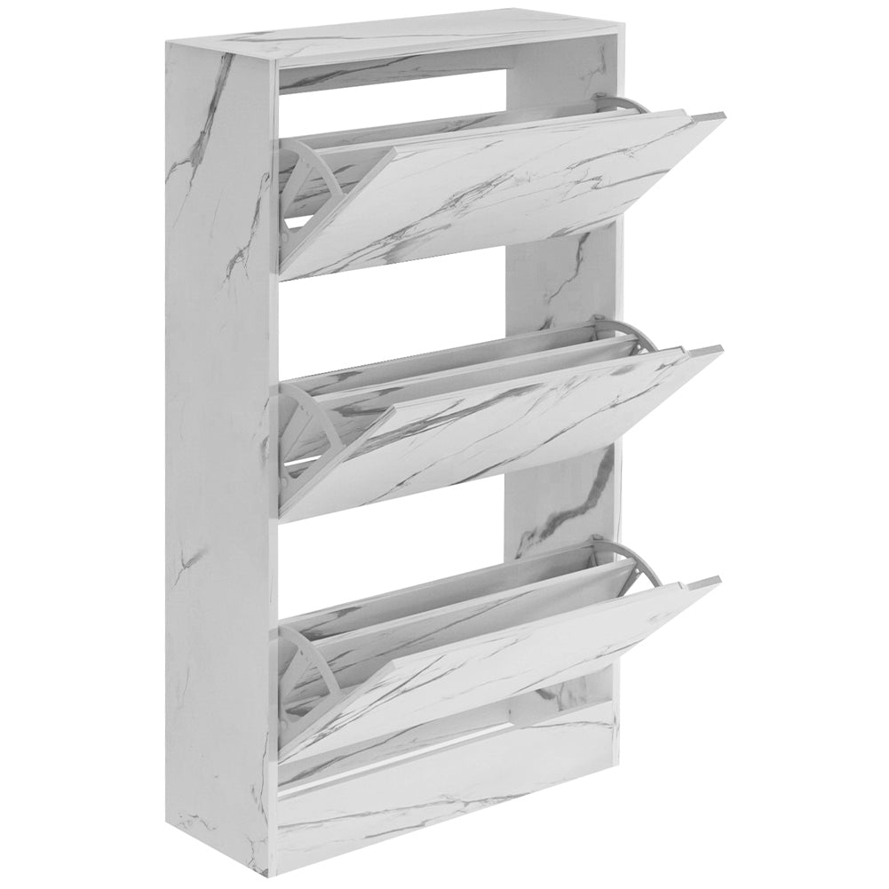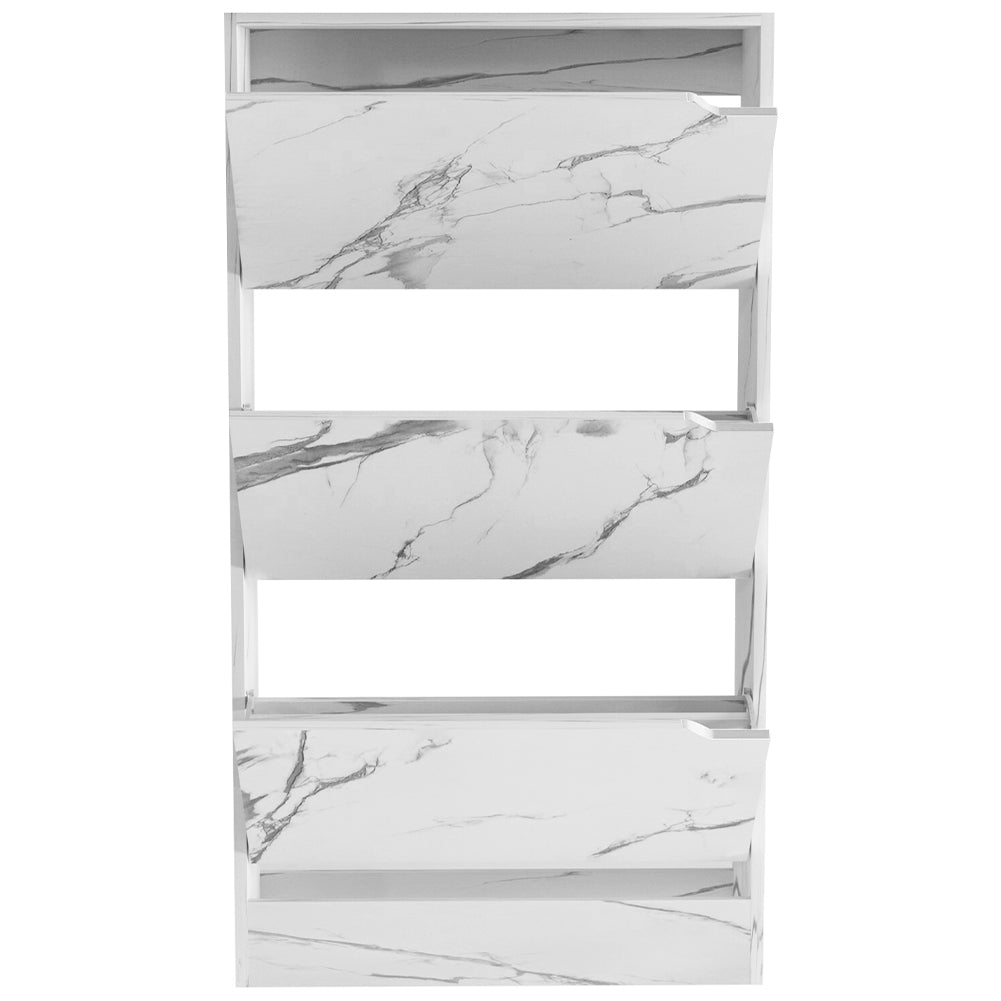 Scarpiera 3 Ante Ripiani Doppia Profondità Porta Scarpe Bianco Marmo 63x24x115cm