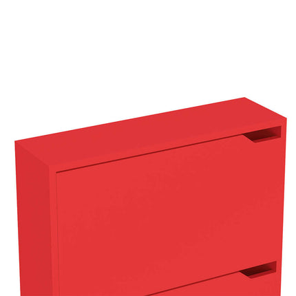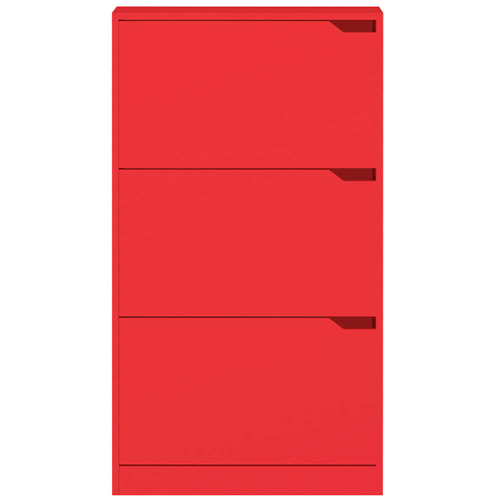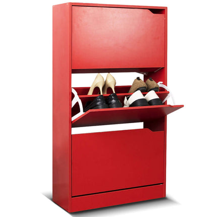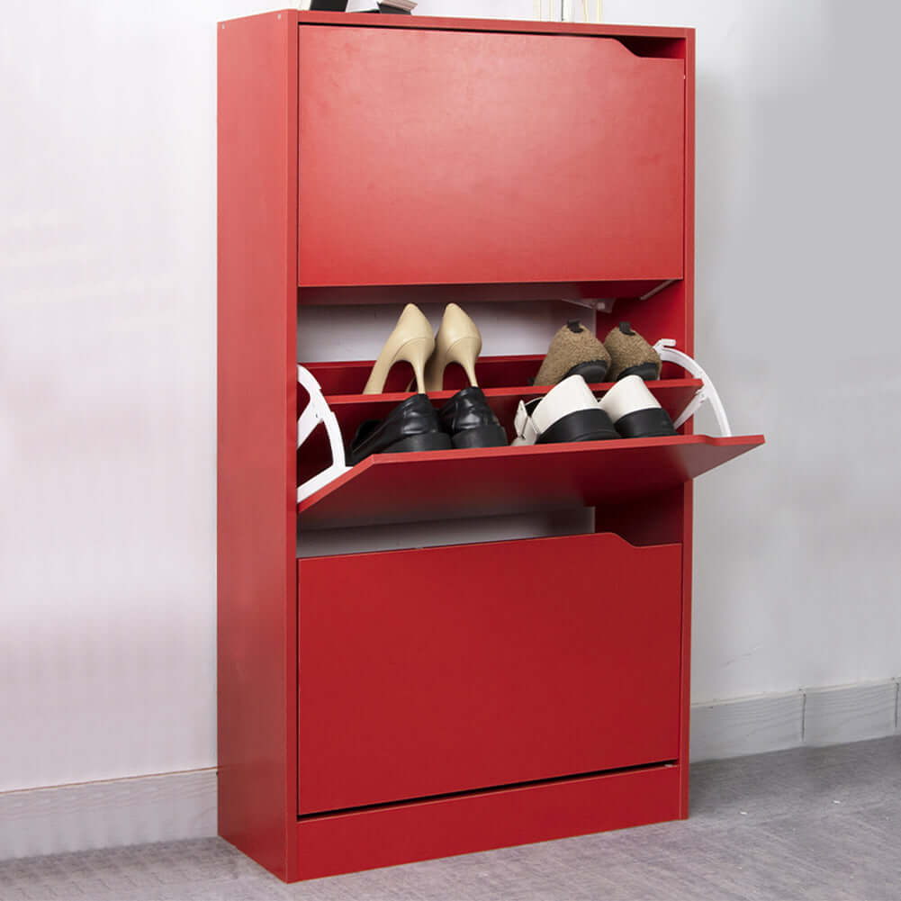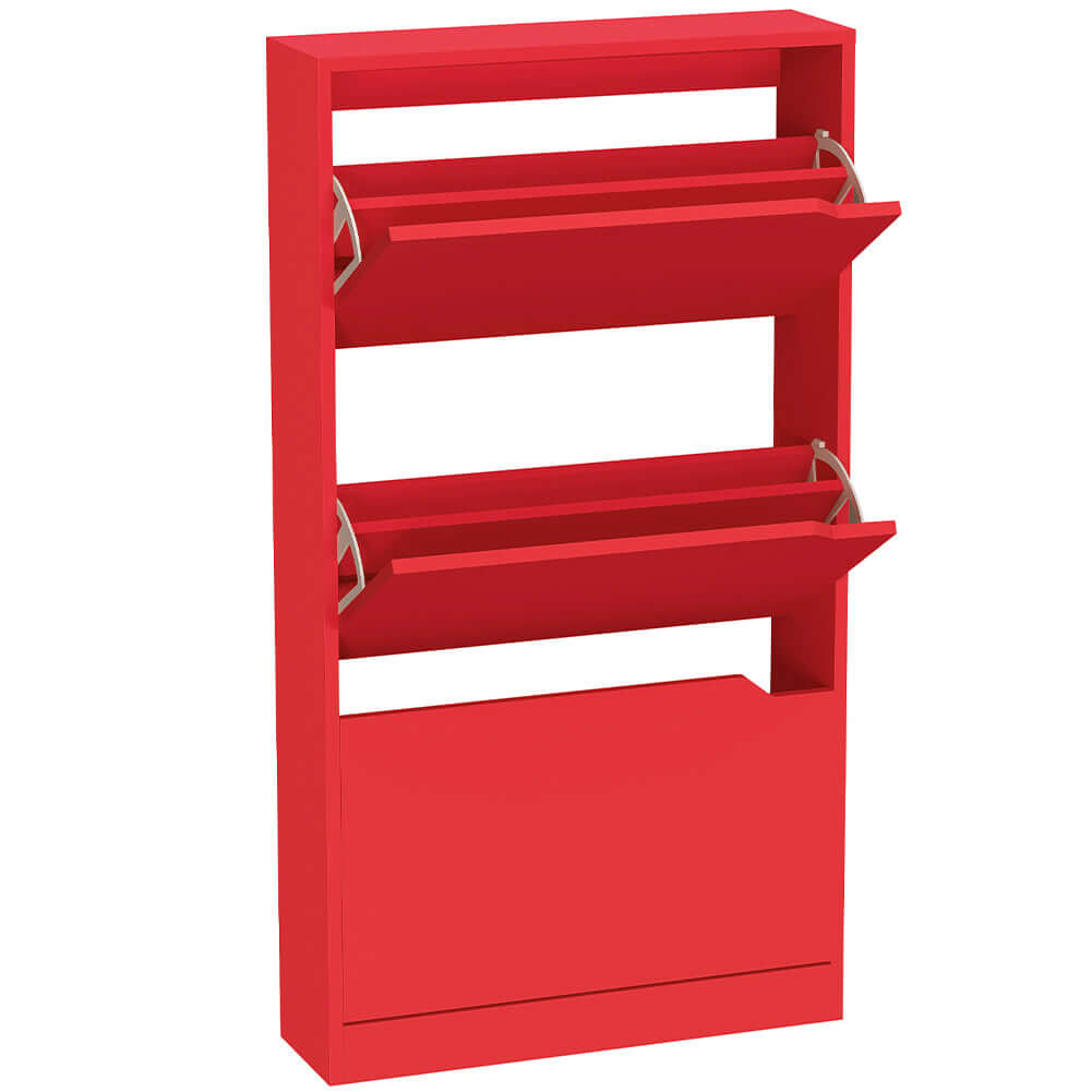 1 x Scarpiera 3 Ante Ripiani Doppia Profondità Porta Scarpe Colore Rosso 63x24x115cm