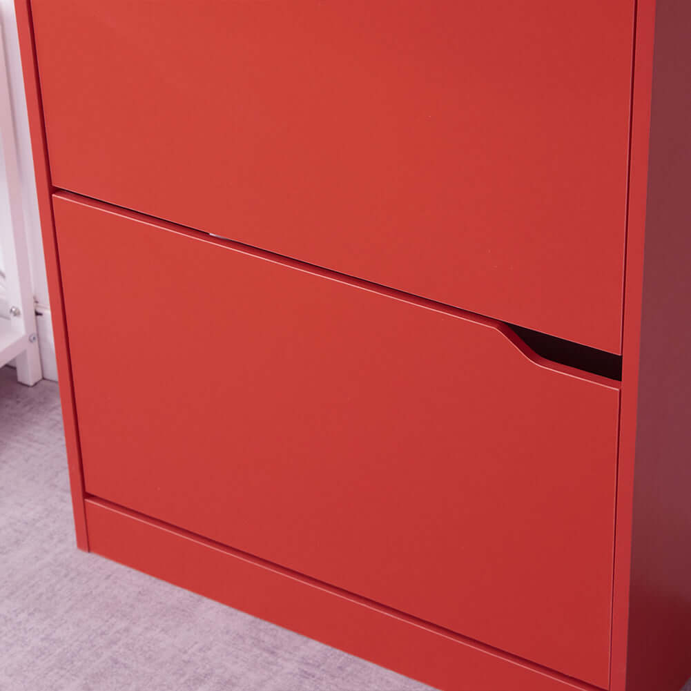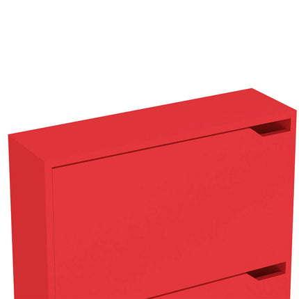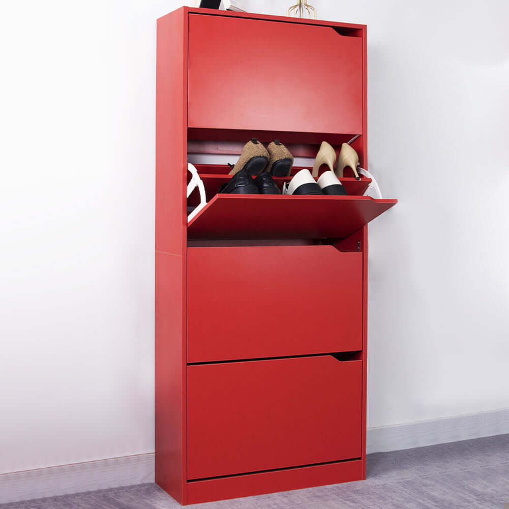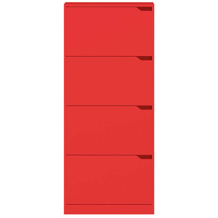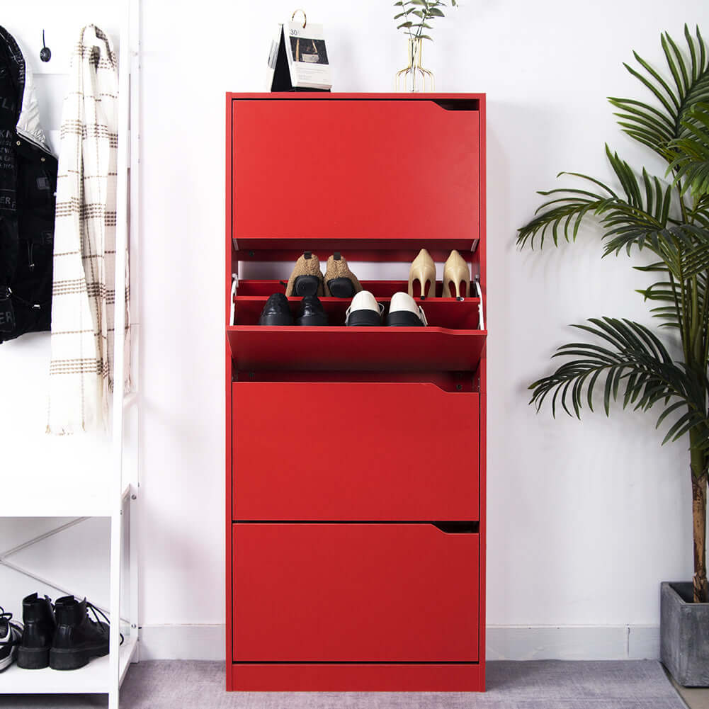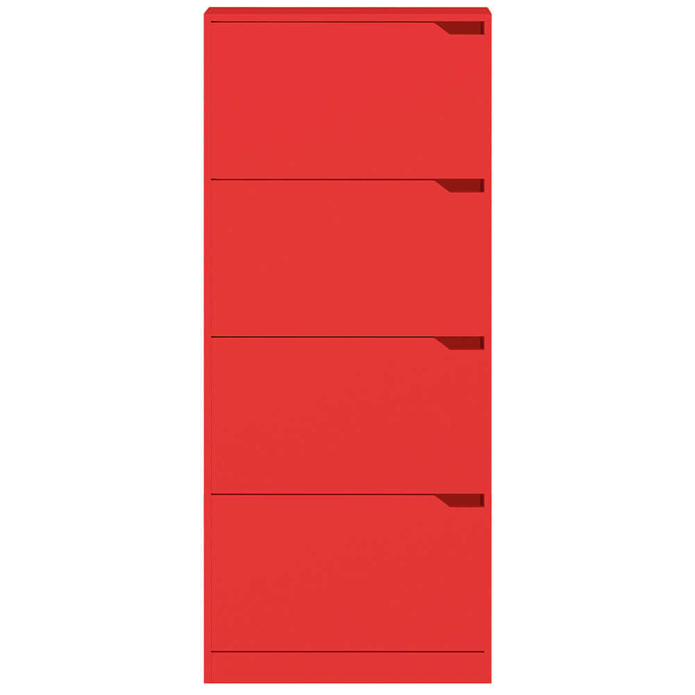 1 x Scarpiera 4 Ante Ripiani Doppia Profondità Porta Scarpe Colore Rosso 63x24x150cm