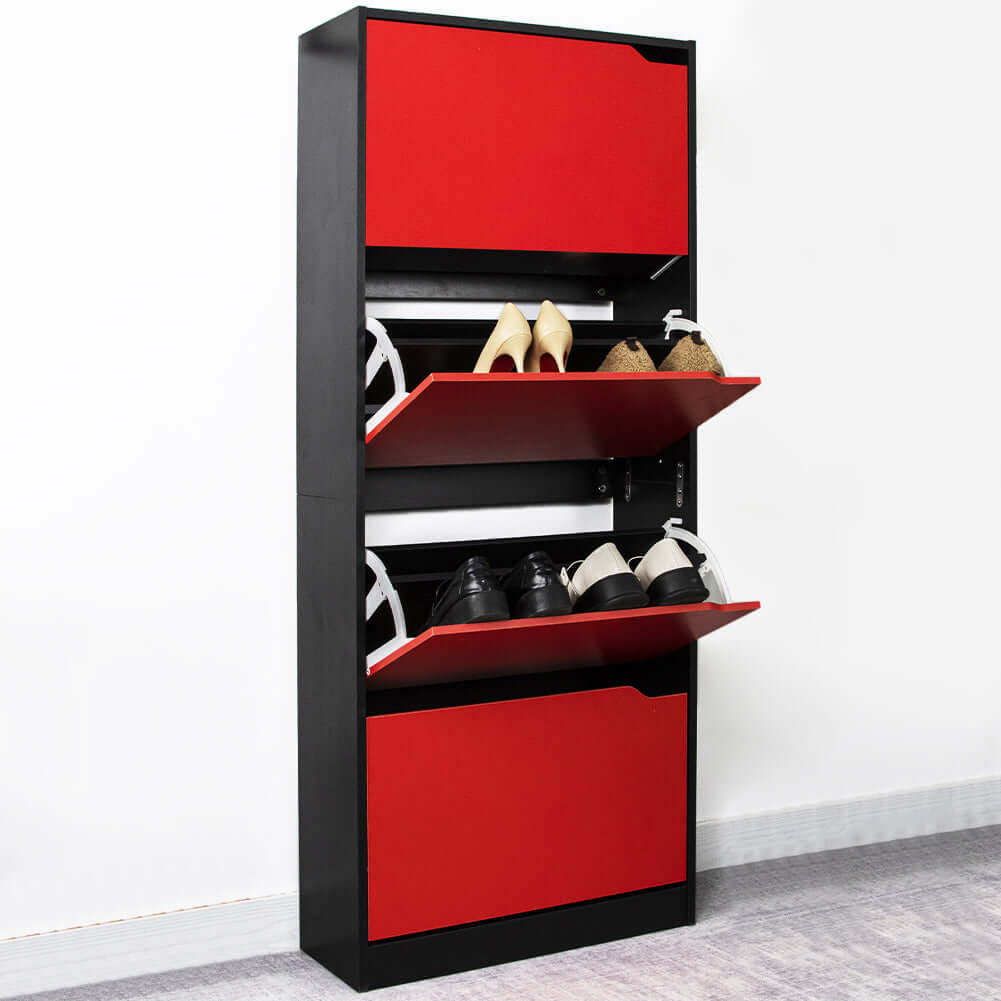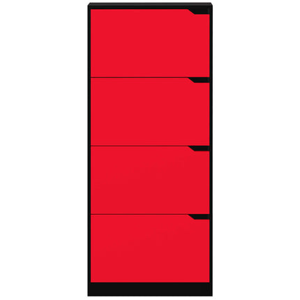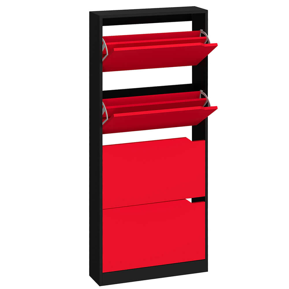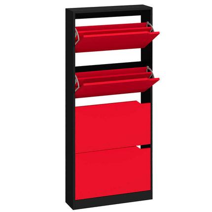 1 x Scarpiera 4 Ante Ripiani Doppia Profondità Porta Scarpe Rosso e Nero 63x24x150 cm
