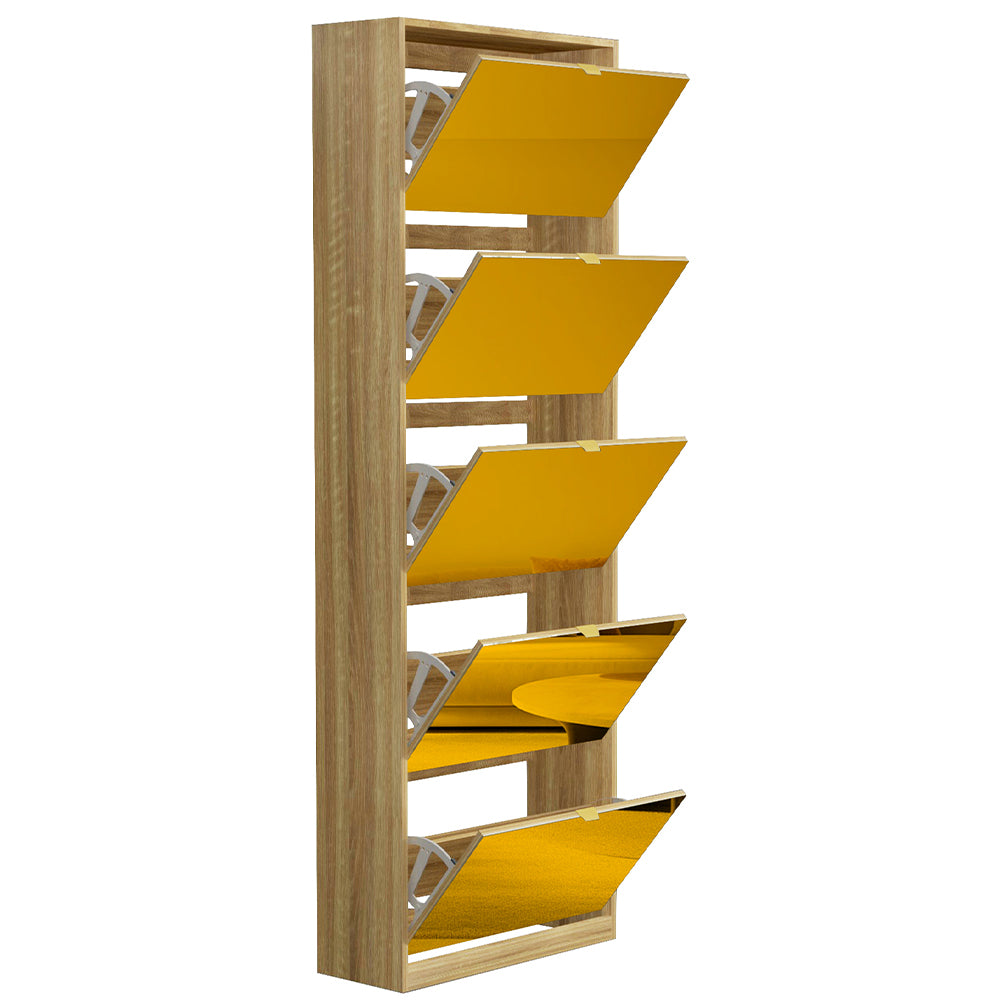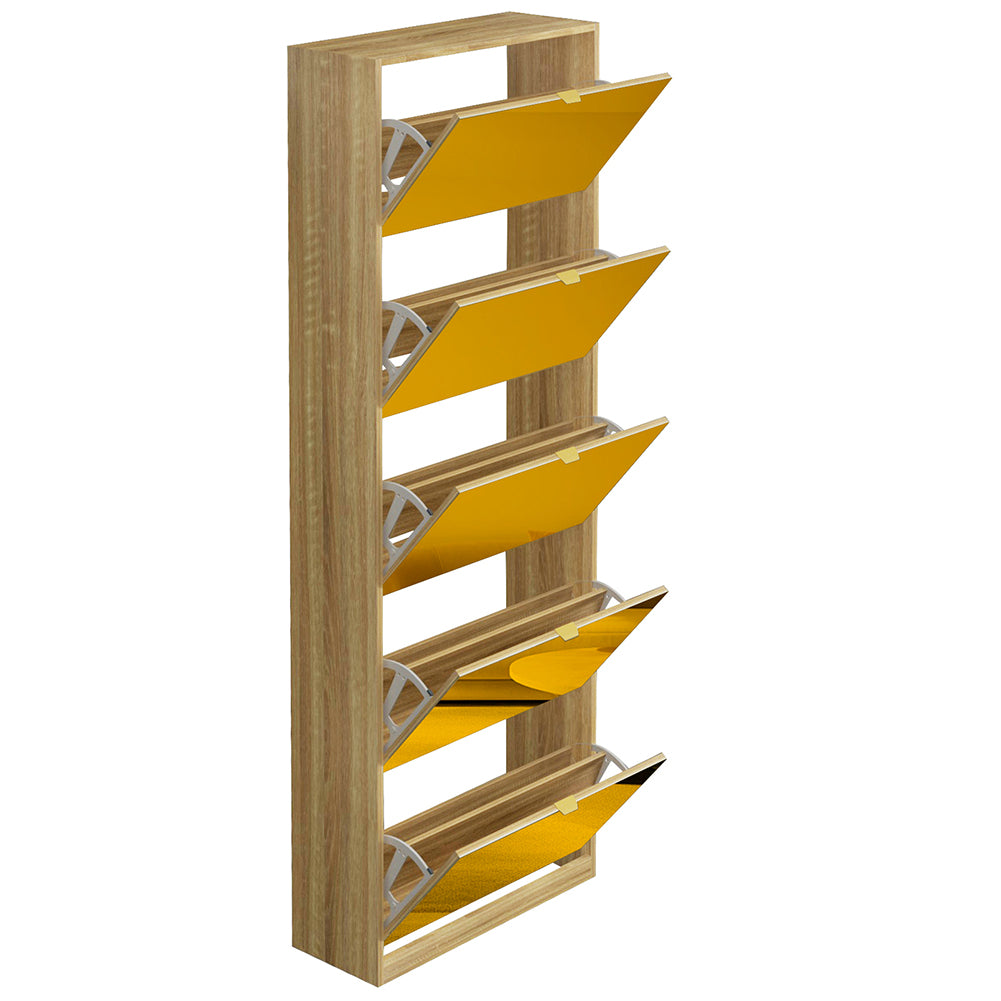 Scarpiera 5 Ante a Specchio Marrone Slim con Maniglia Salvaspazio 59x22x169.5cm