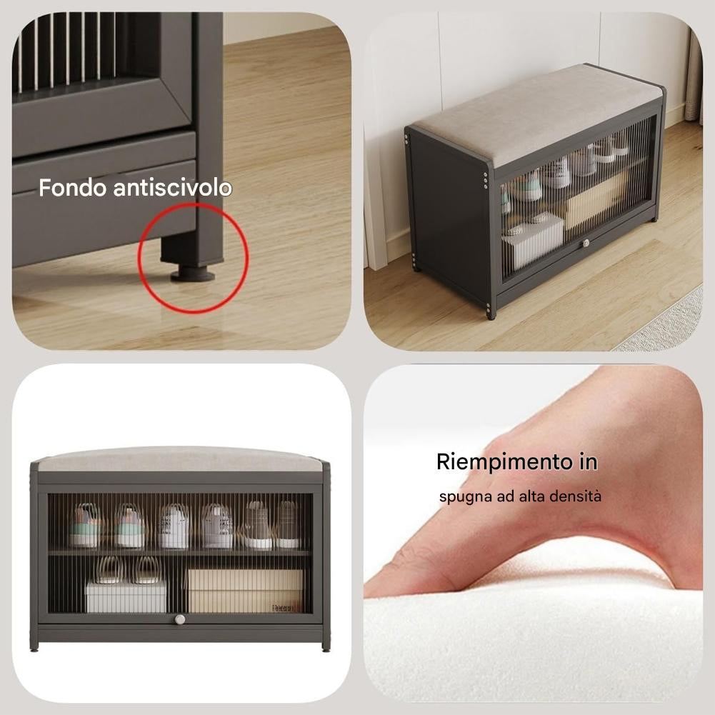 Perfetto per l’ingresso o la cabina armadio, aggiunge un tocco di comfort e praticità alla routine quotidiana.