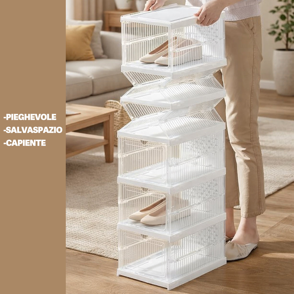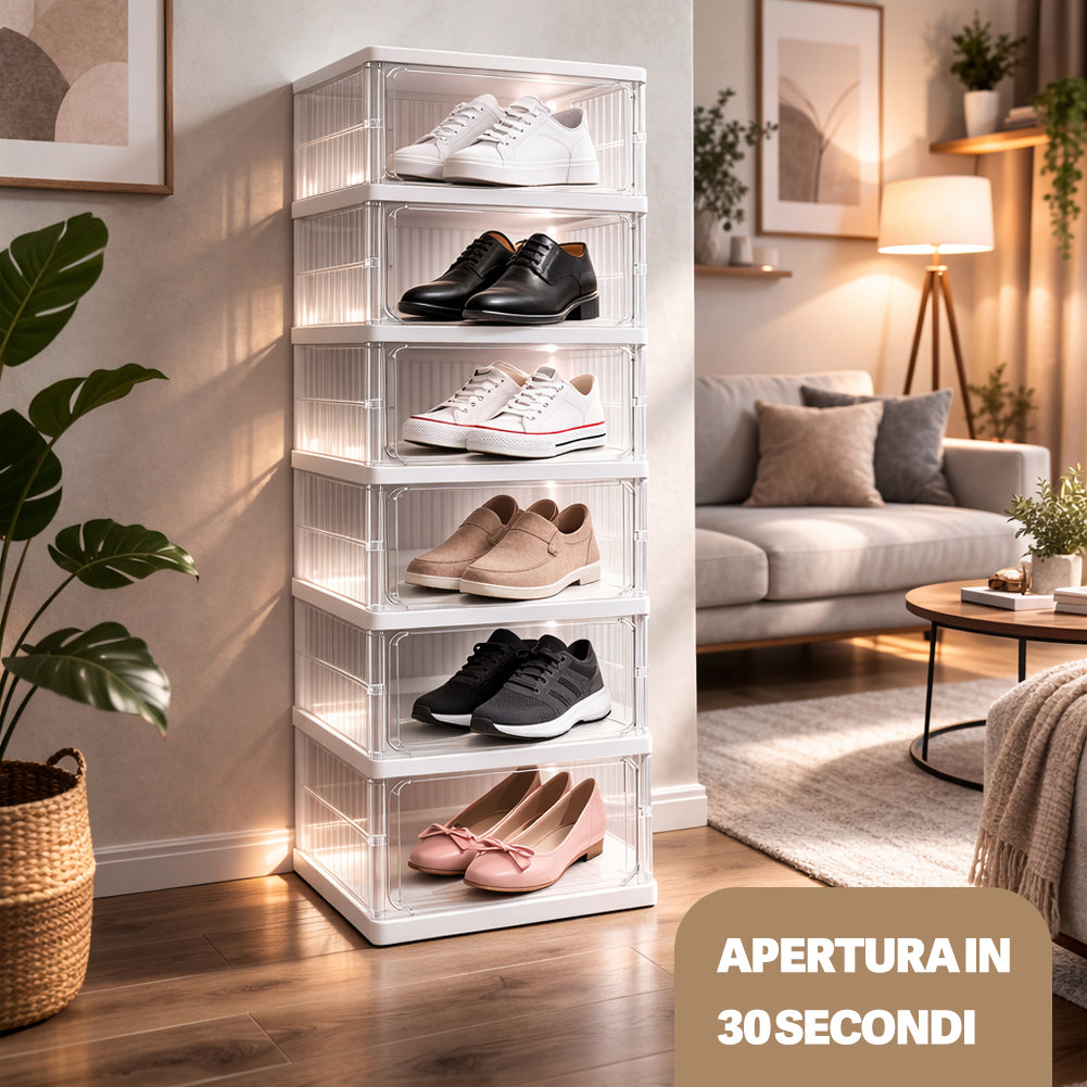 Ideale per sneakers, scarpe eleganti, ballerine o mocassini, mantiene tutto visibile e facilmente accessibile.