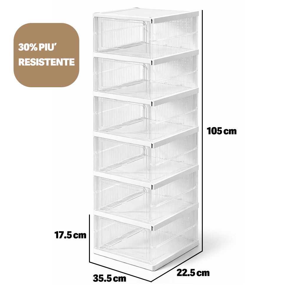 Scarpiera trasparente a 6 ripiani perfetta per organizzare scarpe in modo ordinato e verticale.