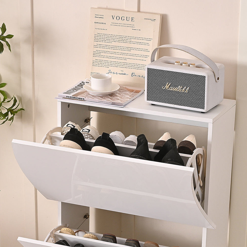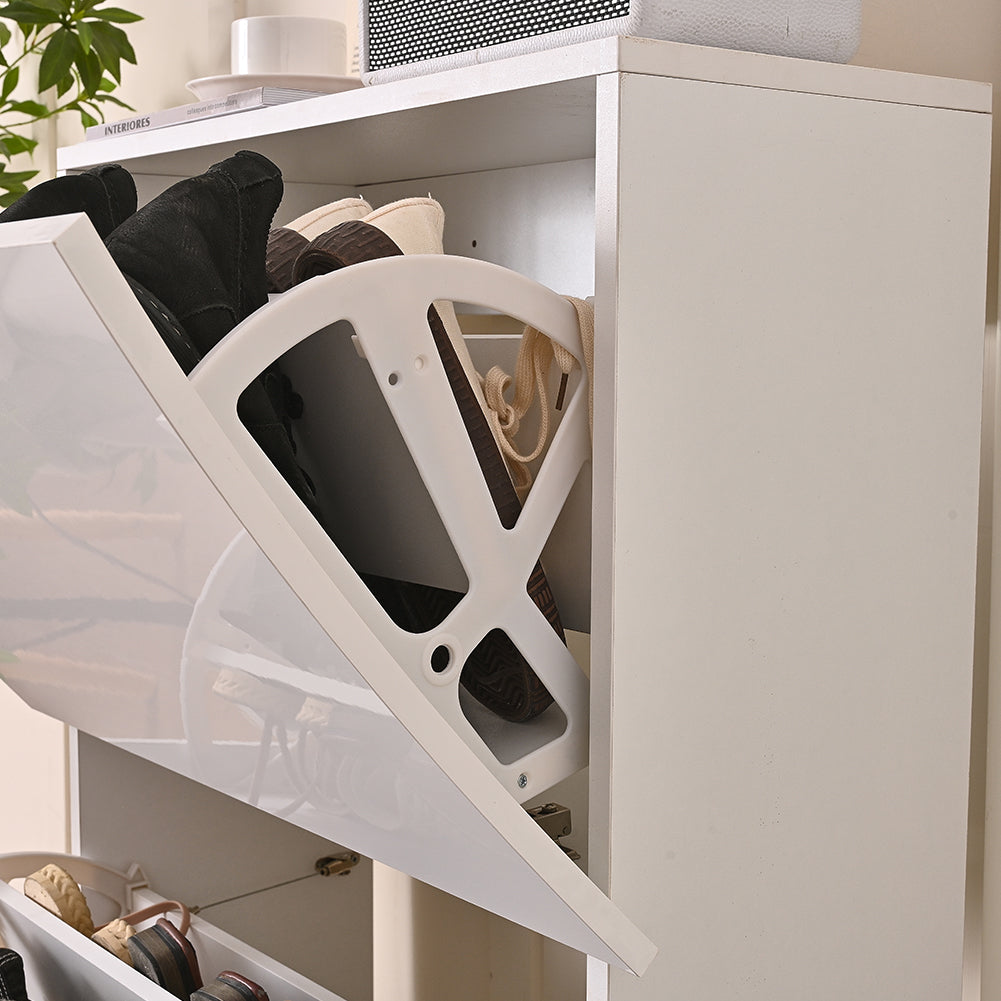Scarpiera Ingresso in Legno Lucido ONDE 3 Ante Bianco Salvaspazio 71x26.5x121cm