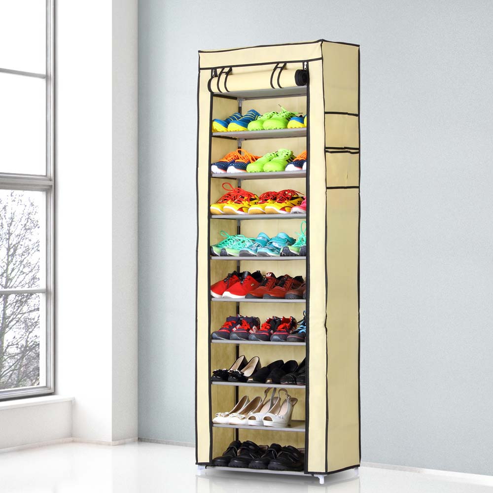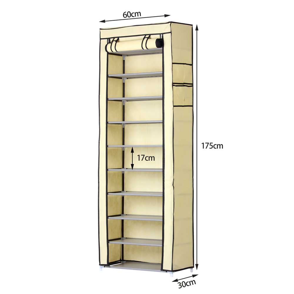 Scarpiera Salvaspazio 11 Ripiani 30 Paia Scaffale Acciaio e Tessuto TNT Beige