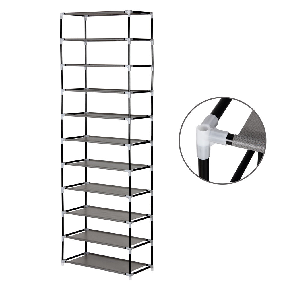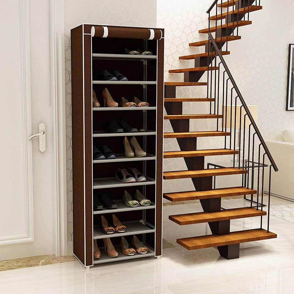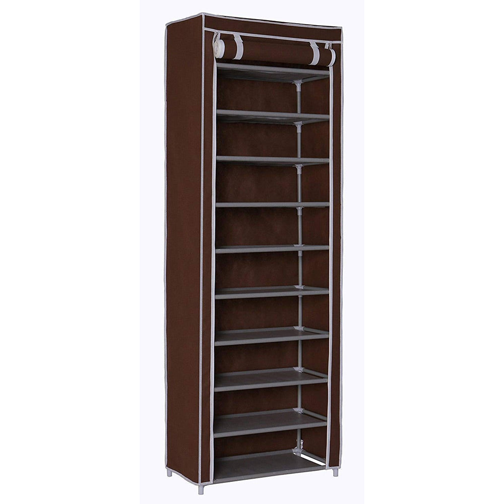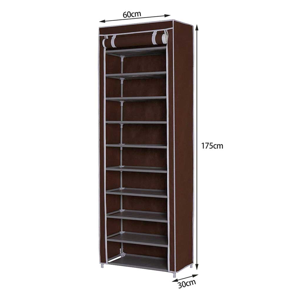 Scarpiera Salvaspazio 11 Ripiani 30 Paia Scaffale Acciaio e Tessuto TNT Marrone