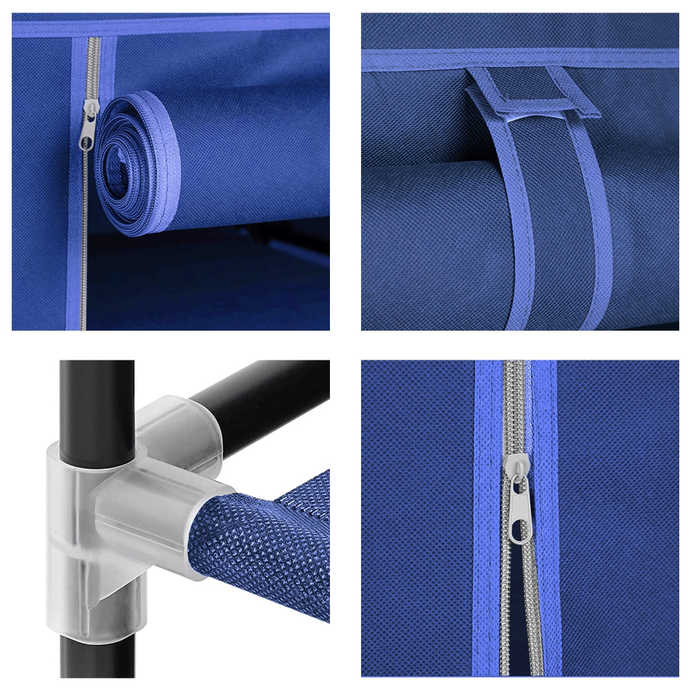 Scarpiera Salvaspazio Blu Struttura Metallo Chiusura Zip Antipolvere 60x30x80h