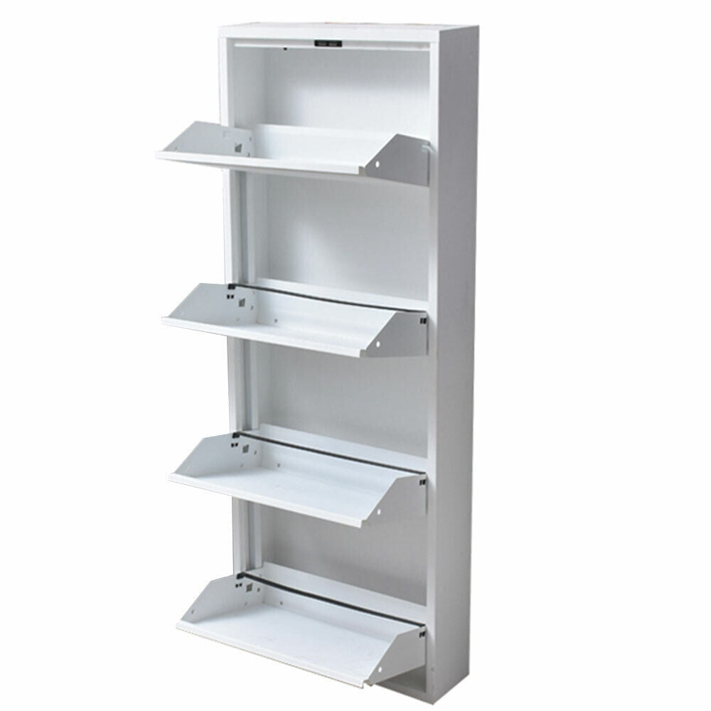 1 x Scarpiera Slim Metallo 4 Ante Ripiani Portascarpe Salvaspazio 140x50x14cm Bianco
